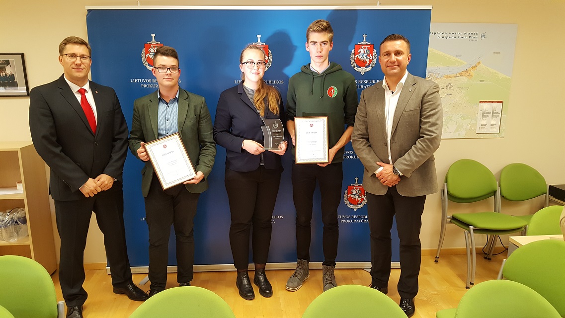 Konkurso nugalėtojai su prokurorais S. Galminu (dešinėje) ir A.Stanislovaičiu, prokuratūros nuotr.