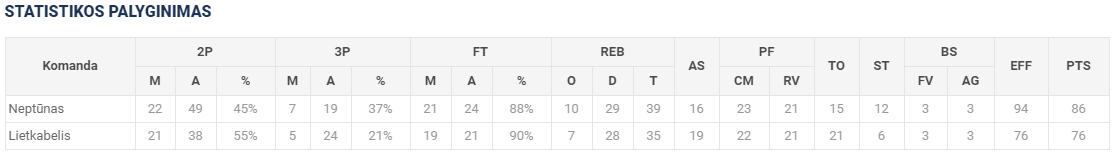 Tarp neptūniečių rezultatyviausias buvo Edgaras Želionis, pelnęs 23 taškus.