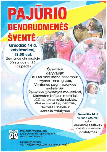 Jau šiandien, ketvirtadienį, 18 val. Žemynos gimnazijoje (Kretingos g. 23) vyks Pajūrio bendruomenės šventė.
