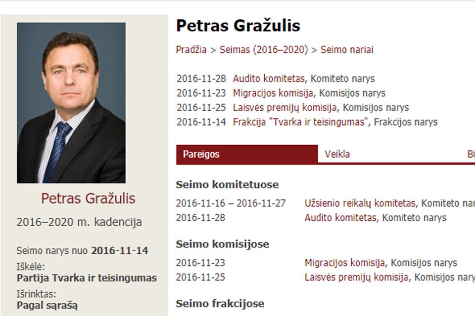 Vyriausioji tarnybinės etikos komisija (VTEK) pradėjo tyrimą dėl Gargždų rinkimų apygardoje nesėkmingai į Seimą kandidatuvusio, tačiau pagal partijos sąrašą į jį patekusio partijos „Tvarka ir teisungumas” nario Petro Gražulio elgesio.