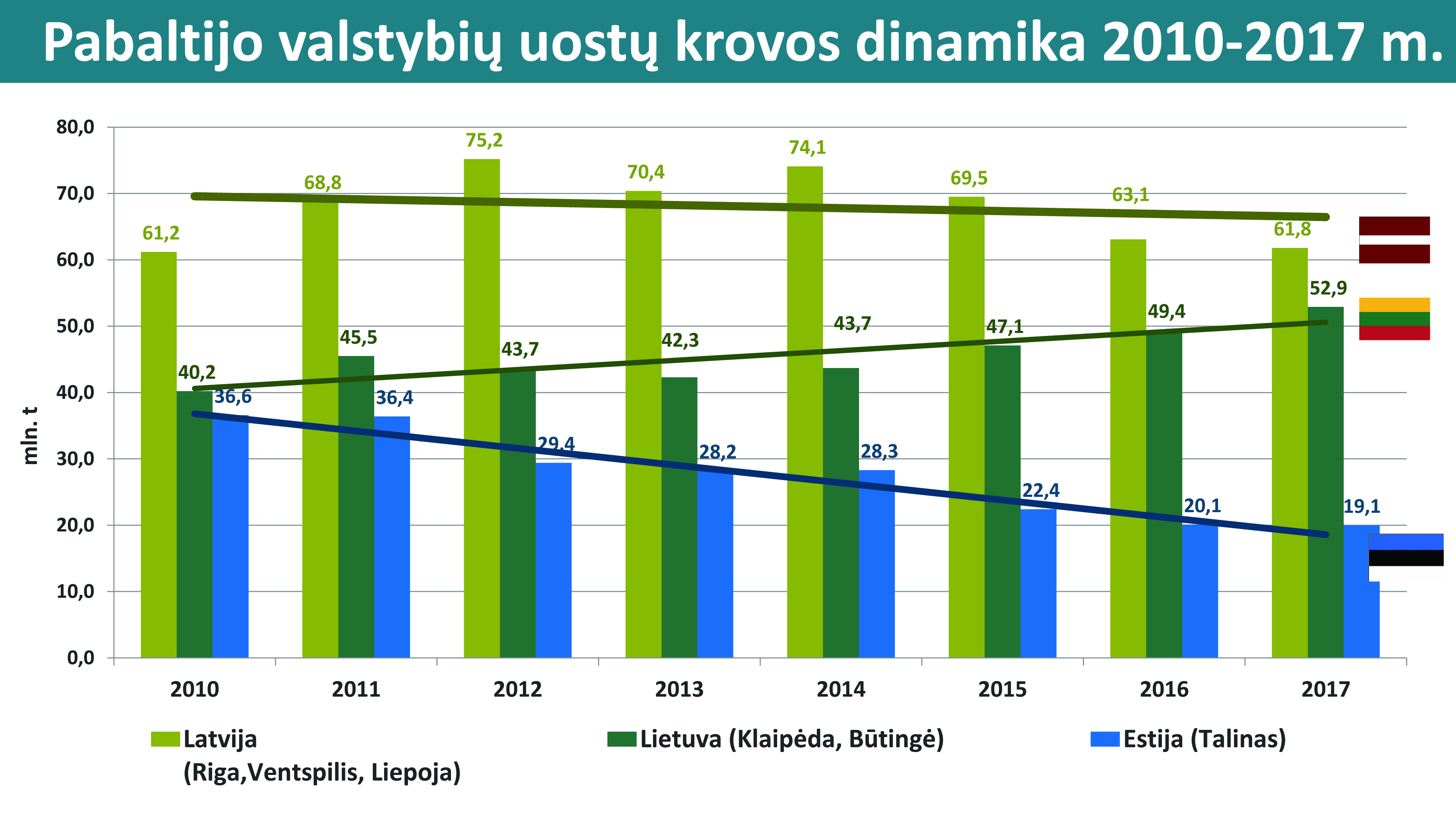 Vertinant pastarųjų 10 metų laikotarpį (2008–2017 m.), Klaipėdos uosto krova išaugo 44,5 proc. arba 13,29 mln. t. – nuo 29,88 mln. t iki 43,17 mln. t.
