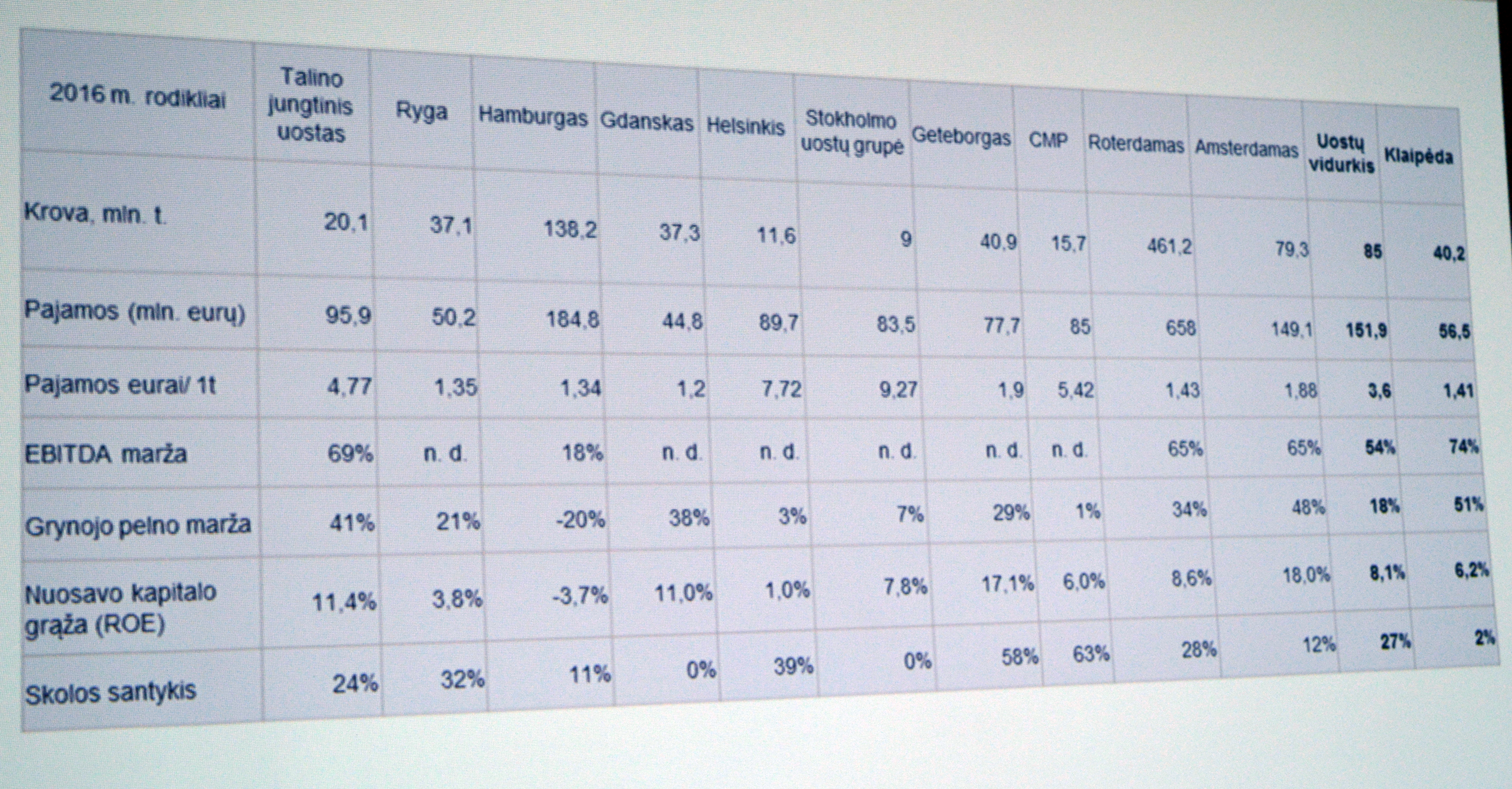 Lietuvos jūrų krovos kompanijų asociacijos prezidentas Vidmantas Dambrauskas akcentavo, kad reikėtų lyginti greta veikiančius uostus, su panašia krovinių struktūra.