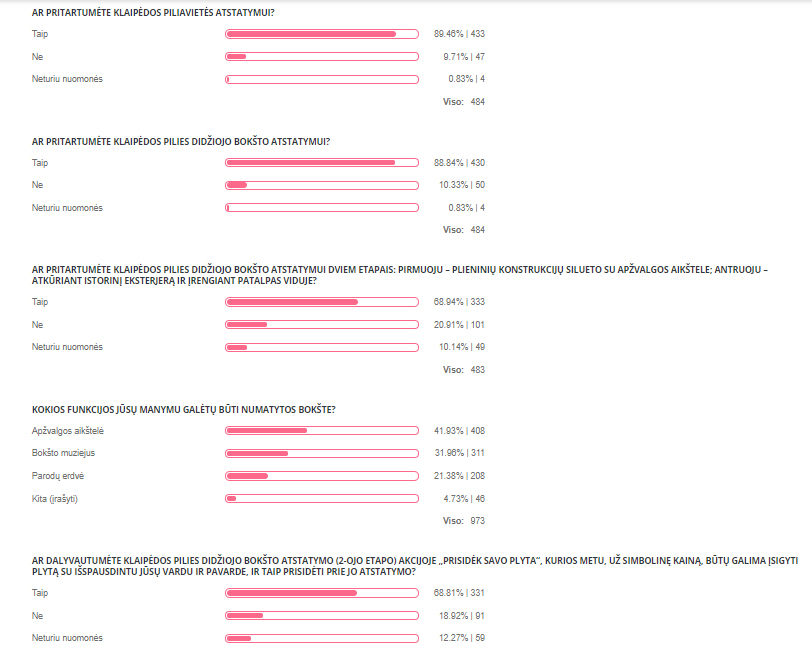 Iki antradienio vakaro apklausoje jau buvo dalyvavęs beveik 500 žmonių. Absoliuti dauguma jų pasisako ir už bokšto, ir už visos pilies atstatymą.