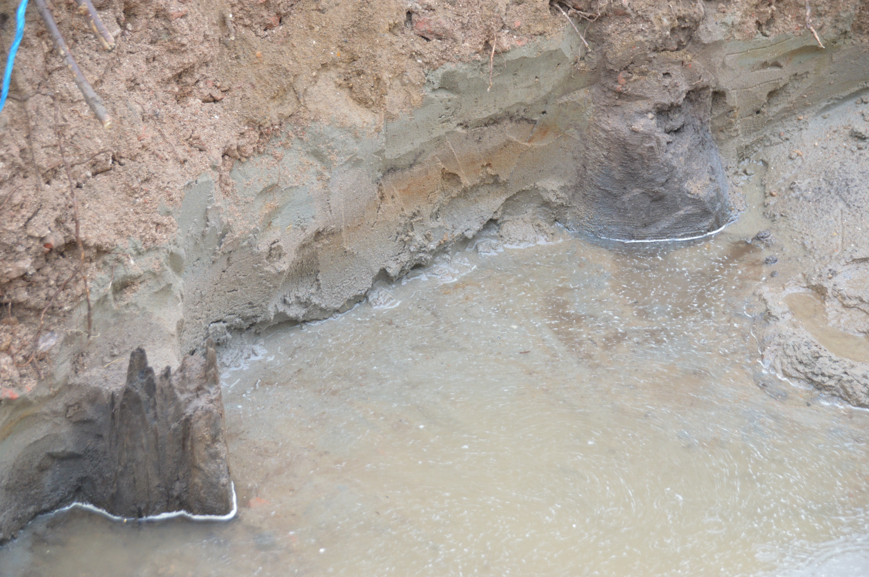Žvalgomuosius archeologinius tyrimus atliekantys archeologai aptiko du medinius polius, kurie galutinai įrodo, jog apčiuopta į pilį vedusio tilto vieta.