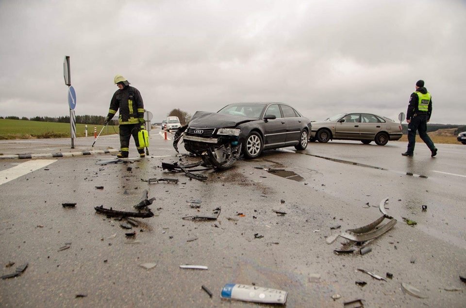 „Audi A4“, kurį vairavo 68 metų vyras, sukdamas į kairę nepraleido ir susidūrė su priešpriešais važiavusiu automobiliu „Audi A8, kurį vairavo 28 metų Kartenos gyventojas.