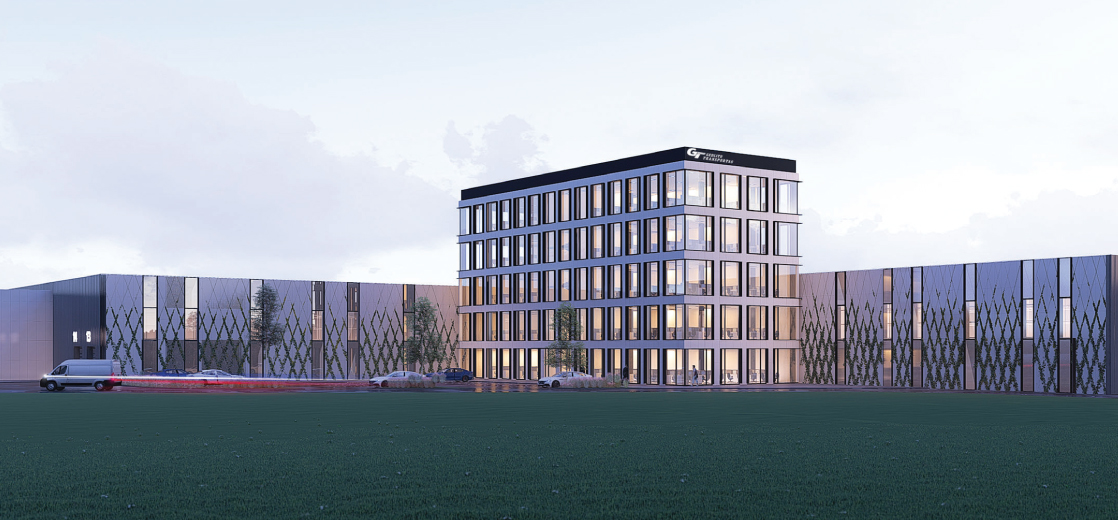 Naujas logistikos centras bus pastatytas apie 6,5 ha ploto sklype. „2L Architektai” vizualizacija