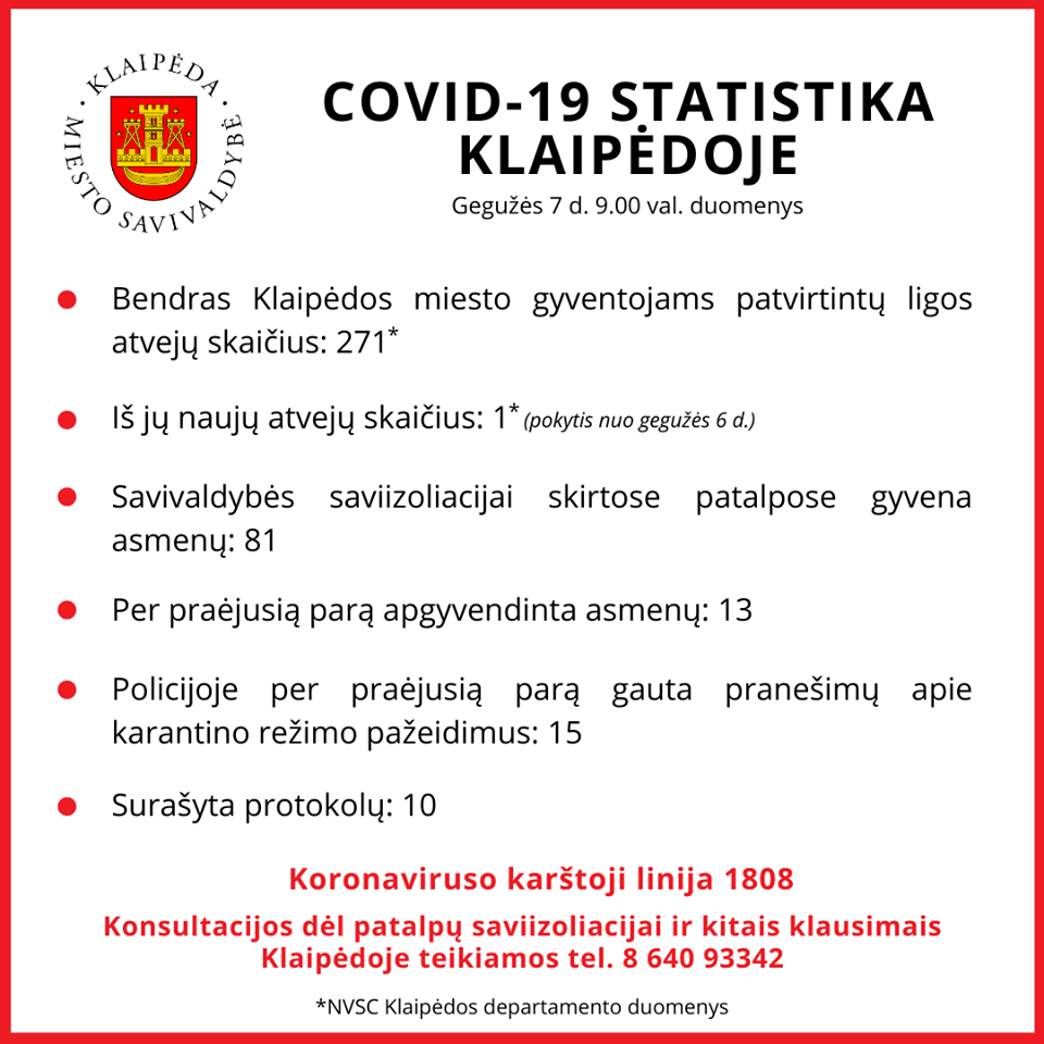 Anot Klaipėdos savivaldybės, vienas susirgimas diagnozuotas uostamiestyje.