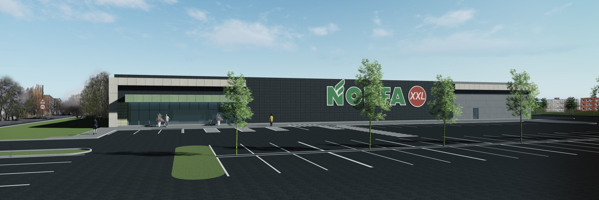 Tačiau dabar paviešinti kiti šioje vietoje numatomo prekybos centro statybų projektiniai pasiūlymai. Juose nurodoma, jog statytoja yra UAB „Rivona“, kuri priklauso „Norfos“ įmonių grupei. Projektinių pasiūlymų vaizdinėje dalyje aiškiai matyti, jog numatoma statyti prekybos centrą „Norfa XXL“.