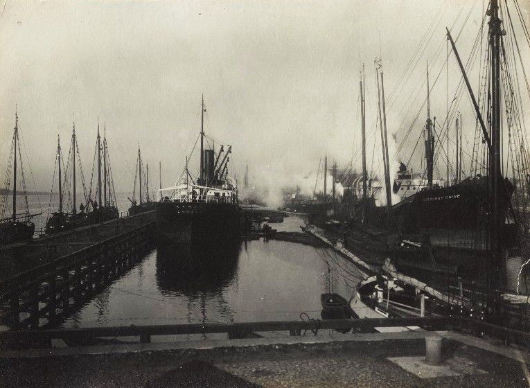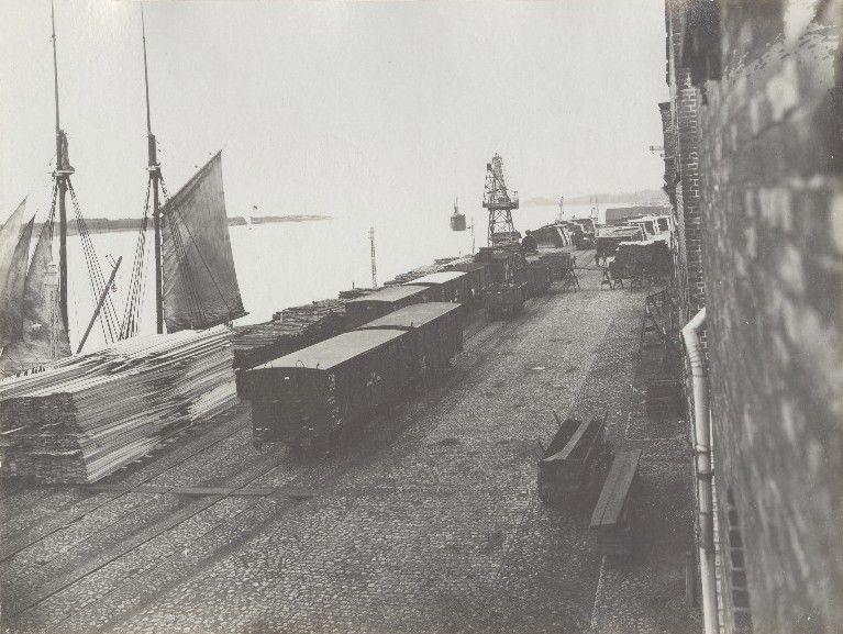 XX a. pradžios nuotraukoje matyti į uostą nutiesti geležinkelio bėgiai. Klaipėdos regioninio valstybės archyvo nuotr.