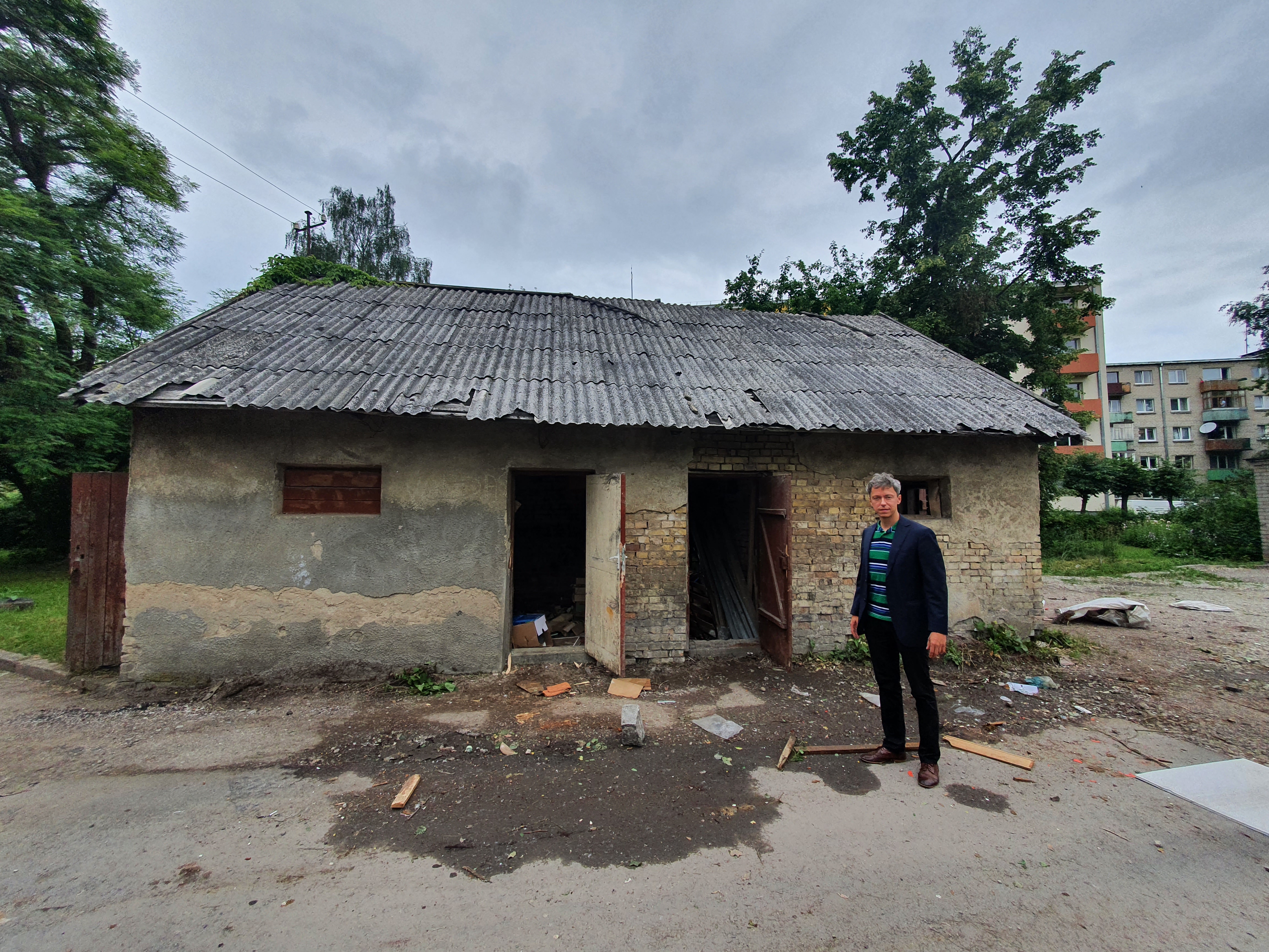 Savivaldybei priklausančiame sandėliuke Donatas Švirėnas ne vienerius metus laikė savo daiktus. Martyno Vainoriaus nuotr.