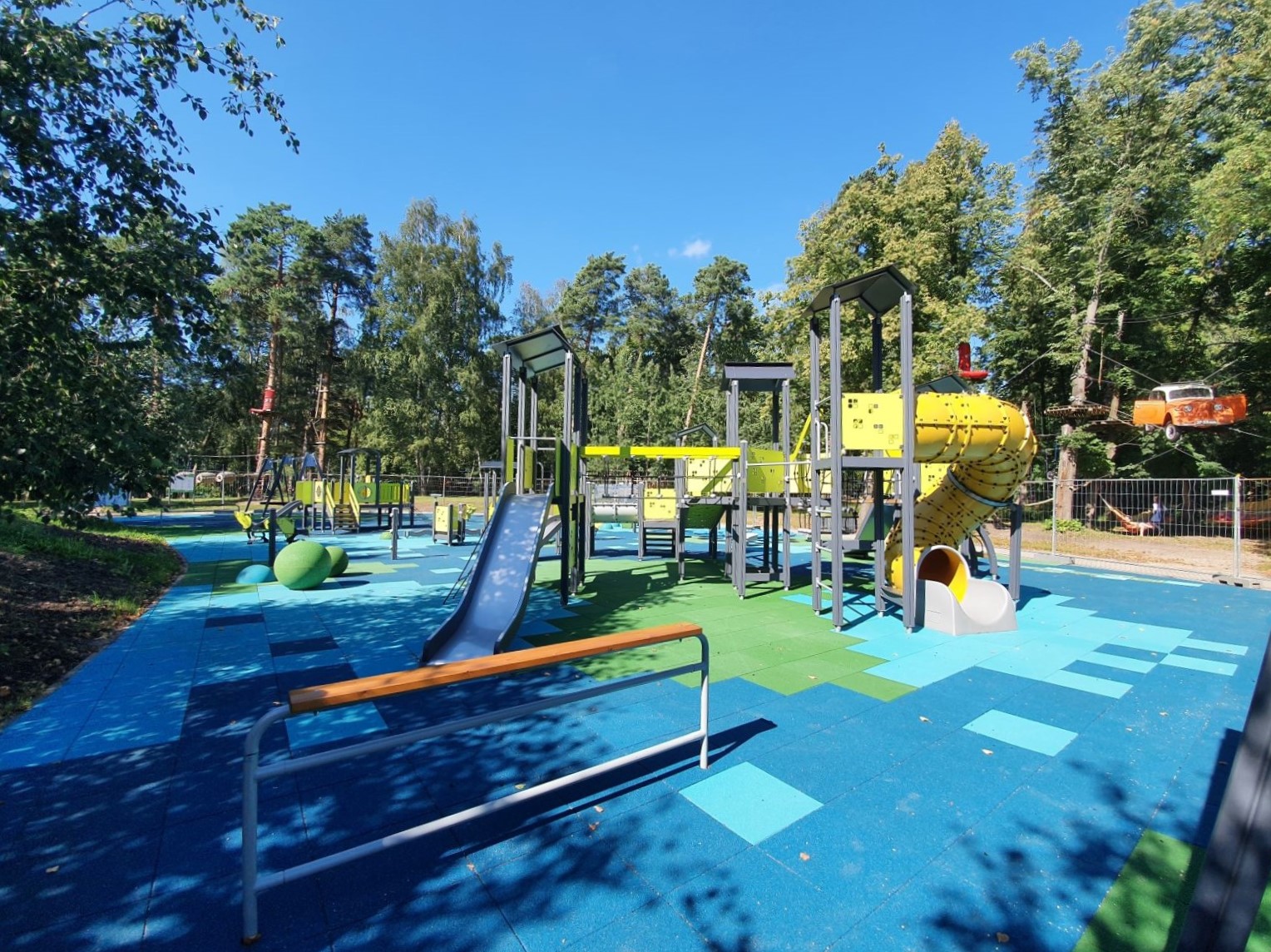 Aikštelėje, kuri yra išklota jūrinėmis spalvomis nuspalvinta ilgaamže danga, įrengtas vienas didelis ir keli mažesni daugiafunkciniai veiklos bokštai, kompleksinis įrenginys su tuneliniu nusileidimu, sūpynės. Erdvė užpildyta įvairiais motoriką bei vestibiuliarinį aparatą lavinančiais balansiniais elementais. Spalvinga aikštelė, kurioje vaikai galės žaisti nemokamai, pagyvina bendrą Poilsio parko vaizdą.