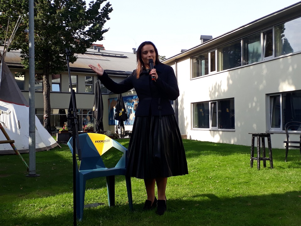 Sveikinimo žodį susirinkusiems tarė bibliotekos direktorė Laura Juchnevič. Palmiros Mart nuotr.