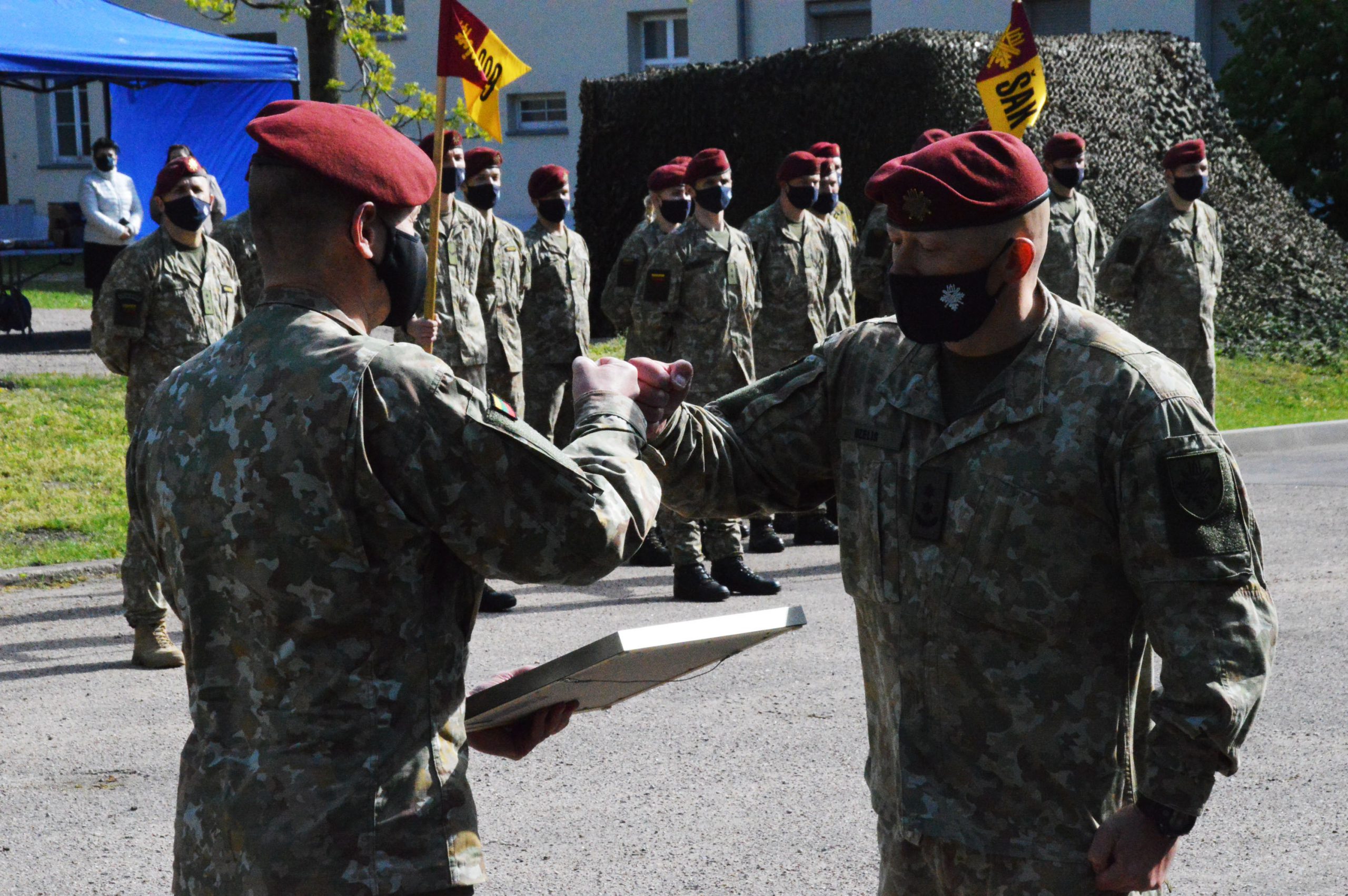 Ta proga po iškilmingos rikiuotės, kovinės vėliavos keitimo, sveikinimo kalbų ir apdovanojimų rinktinės štabo teritorijoje, esančioje Herkaus Manto gatvėje, jos vadas pulkininkas leitenantas Linas Idzelis ir svečiai pasodino atminimo ąžuoliuką.