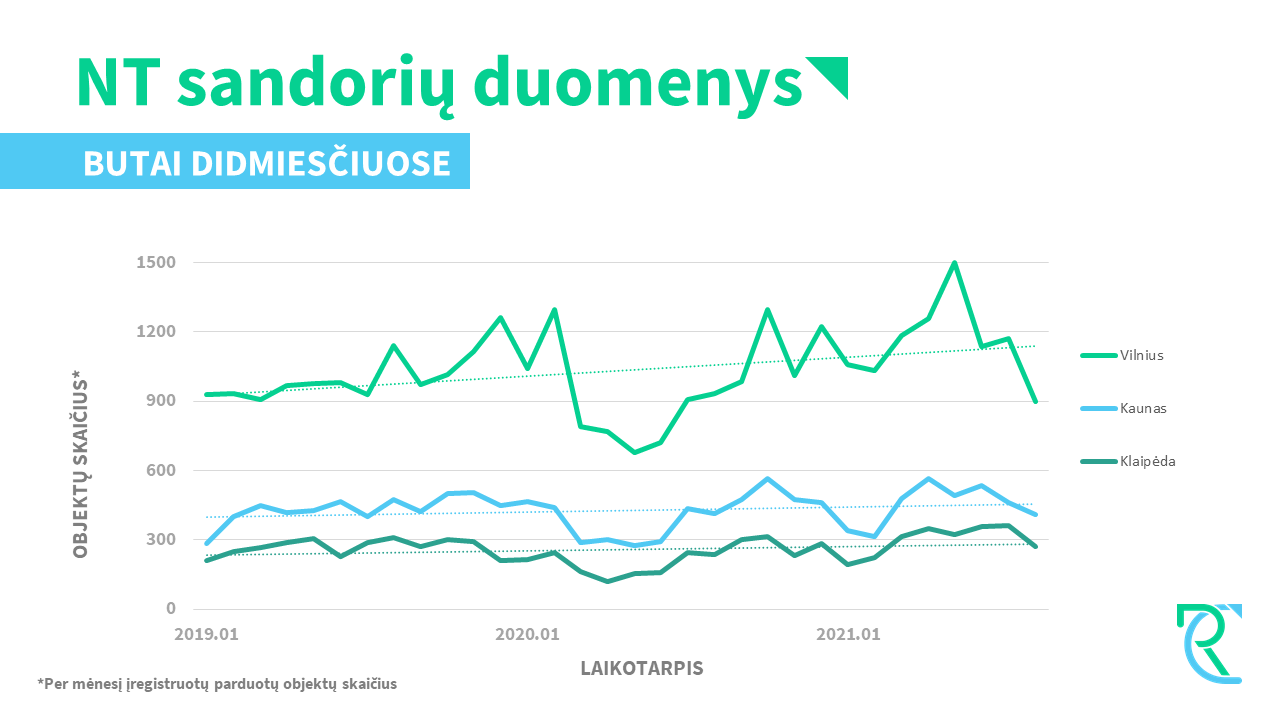 Šiemet visoje Lietuvoje įregistruota 26 tūkst. butų pardavimų – 31 proc. daugiau nei per aštuonis 2020 metų mėnesius, kai įregistruota beveik 20 tūkst. butų pardavimų (2019 m. sausį-rugpjūtį – 23,4 tūkst.), o vien tik per šių metų rugpjūtį – 3 tūkst., arba 5 proc. daugiau nei praėjusių metų rugpjūtį, bet 16 proc. mažiau nei šių metų liepą.