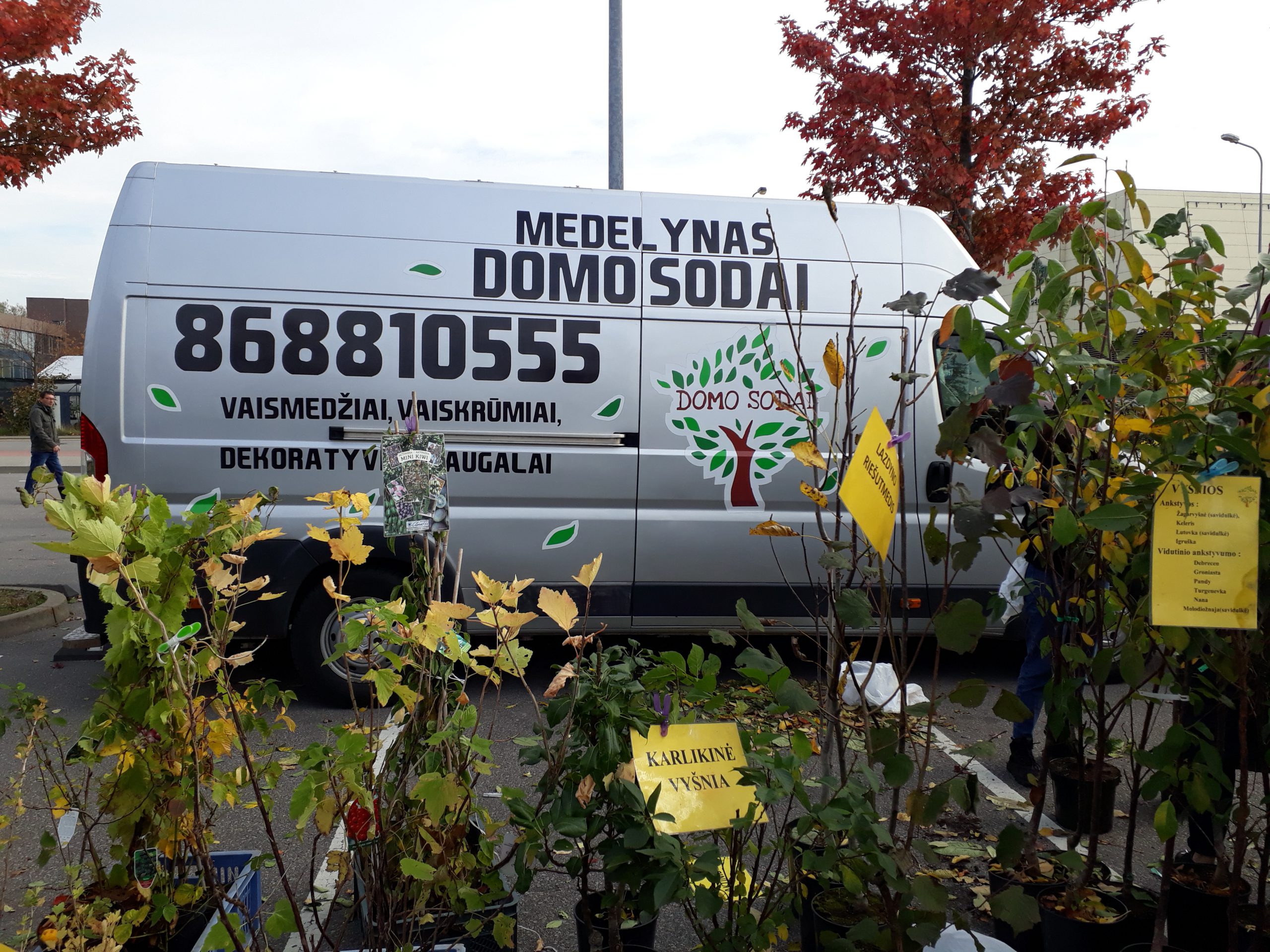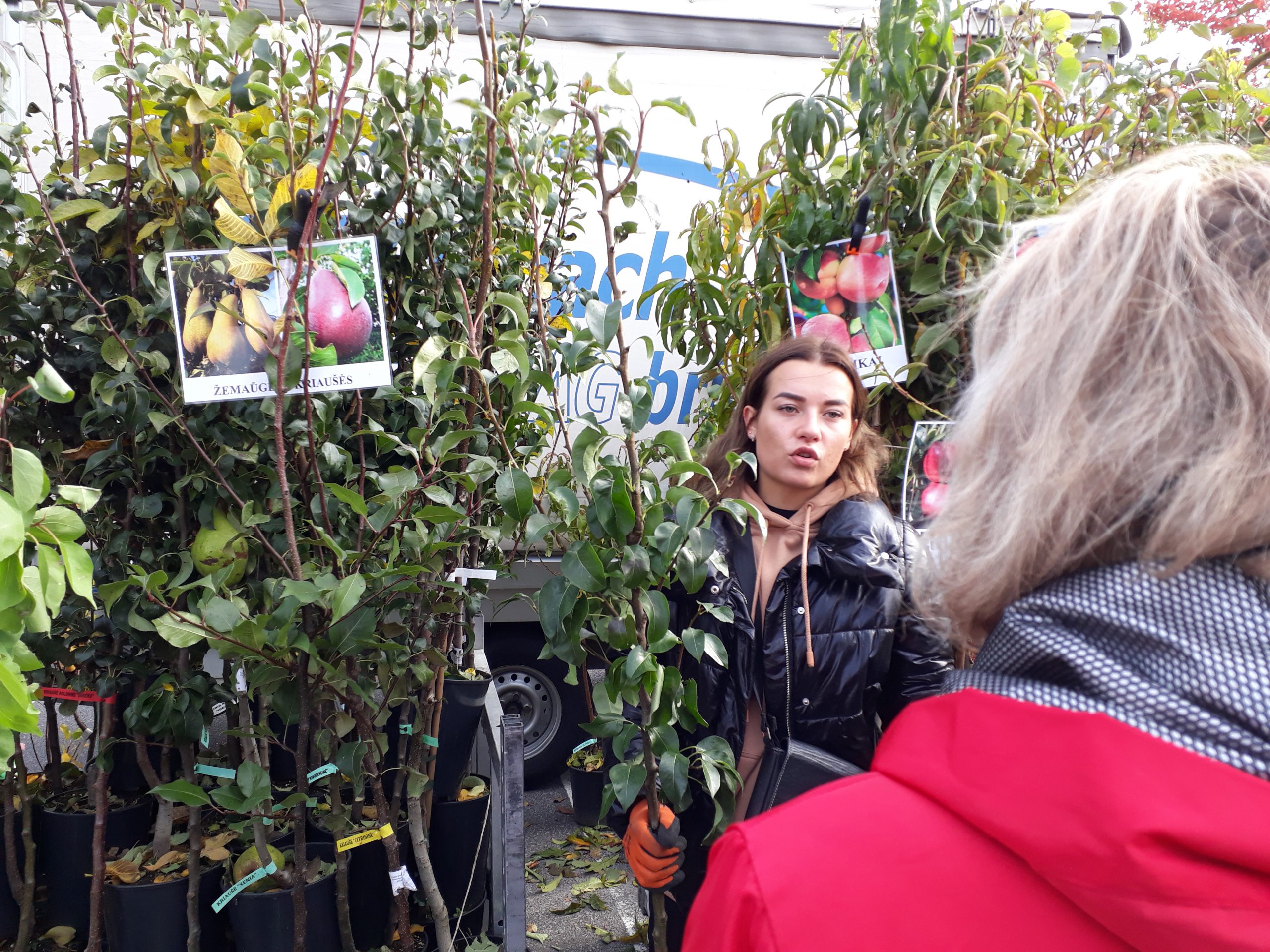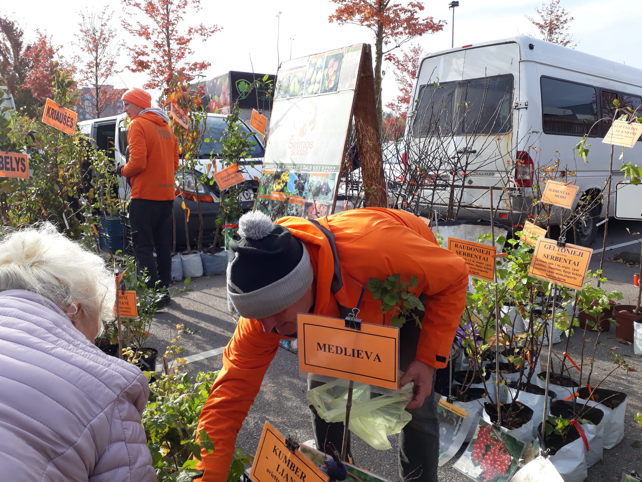 Gražia aukštaitiška greitakalbe šnekantis jaunas vaikinas atvyko iš Panevėžio. Į ilgas kalbas su žurnaliste leistis Deividas iš Šilagalio medelyno neturėjo laiko – sukosi kaip vijurkas, aptarnaudamas šalia jo besibūriuojančius sodininkus, kartu kiekvienam paaiškindamas, kaip nusipirktą medelį prižiūrėti, genėti ir pan. Klaipėdiečiai čia daugiausia rinkosi tradicinius – obelų, kriaušių, vyšnių medelius, kainuojančius apie 15-20 eurų.