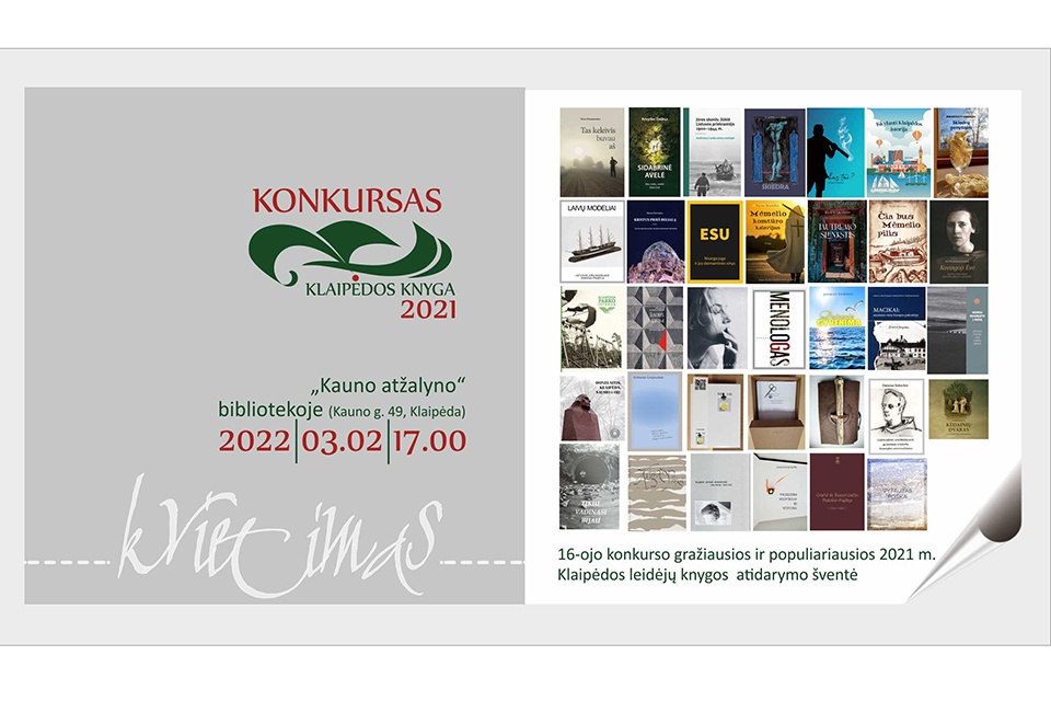 Kovo 2-ąją, trečiadienį, 17 val., vyks 16-ojo konkurso „Klaipėdos knyga 2021“ atidarymo renginys. Jo metu Klaipėdos miesto savivaldybės I. Kanto viešosios bibliotekos „Kauno atžalyno“ padalinyje (Kauno g. 49) bus pristatyta instaliacija „METŲ KNYGA“ (architektas Vladas Balsys). Knygos šventę ves Linas Zubė, gros Marijus Kučikas.