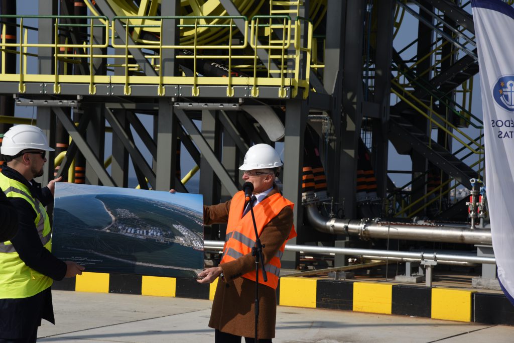 Trečiadienį Klaipėdos uoste simboliškai paminėta 1-osios krantinės, kuria naudojasi „Klaipėdos nafta”, pirmo rekonstrukcijos etapo pabaiga.