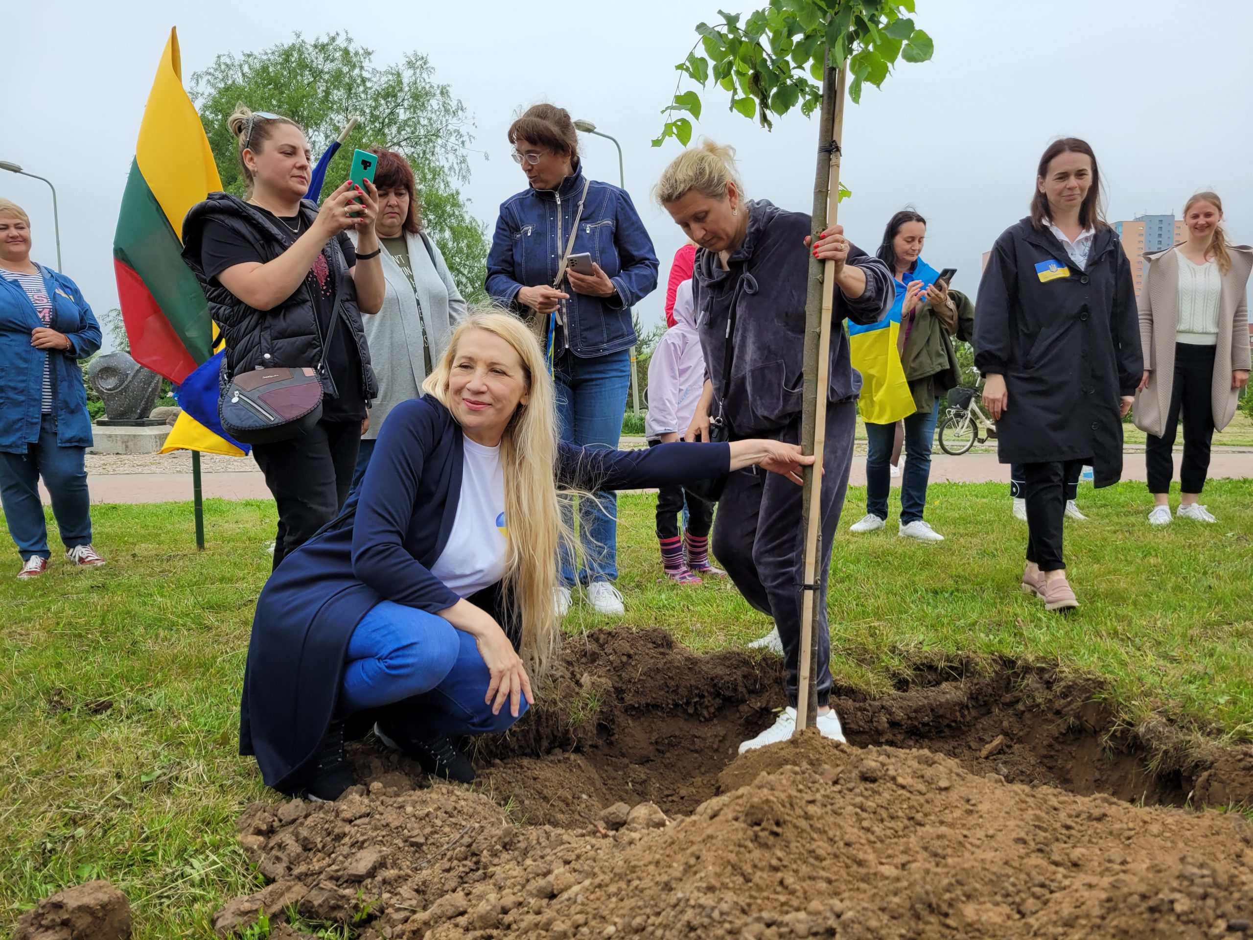 Klaipėdoje prieglobstį nuo Rusijos agresijos radę ukrainiečiai penktadienio pavakare surengė prasmingą padėkos klaipėdiečiams akciją – Sąjūdžio parke sodino medelius.
