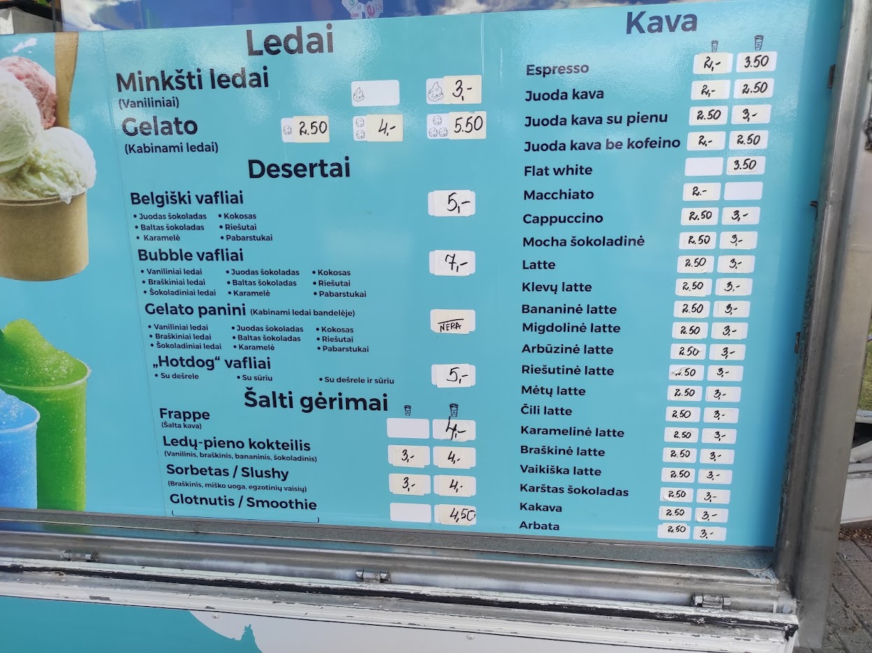 Smaližiai už ledinukus mokės nuo 70 centų iki 2,5 euro, o už didesnį saldainį ir 4 eurus. Cukraus vata kainuoja 3 eurus, o štai ledų rutuliukas – 2 eurus (du rutuliukai – 3,5 euro). Alaus kaina šiemet 5 eurai, sidras kainuoja 6 eurus. Norintys šalia paragauti keptos duonos turės piniginę paploninti dar 5 eurais.