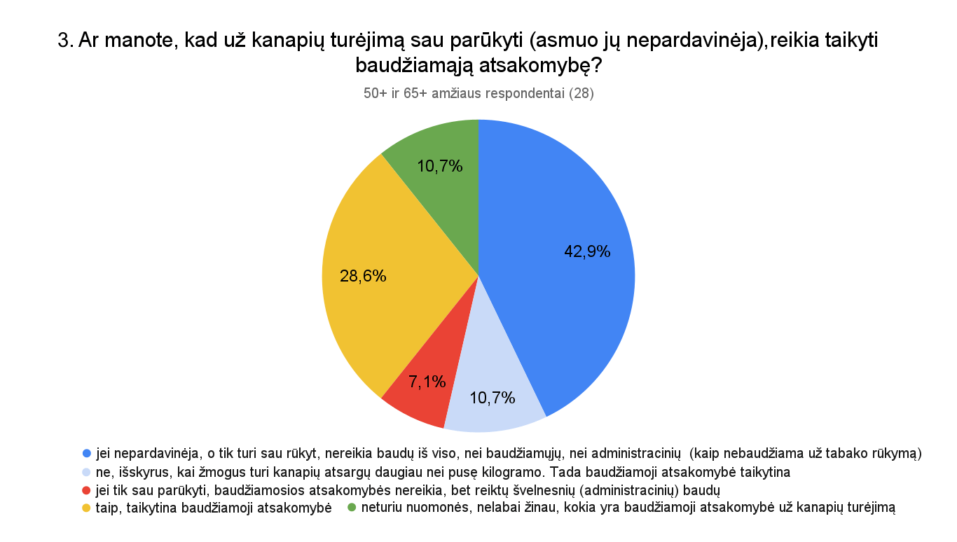 Jei nepardavinėja, o tik turi sau rūkyt, nereikia baudų iš viso, nei baudžiamųjų, nei administracinių (kaip nebaudžiama už tabako rūkymą) – pasirinko 43 proc. respondentų;