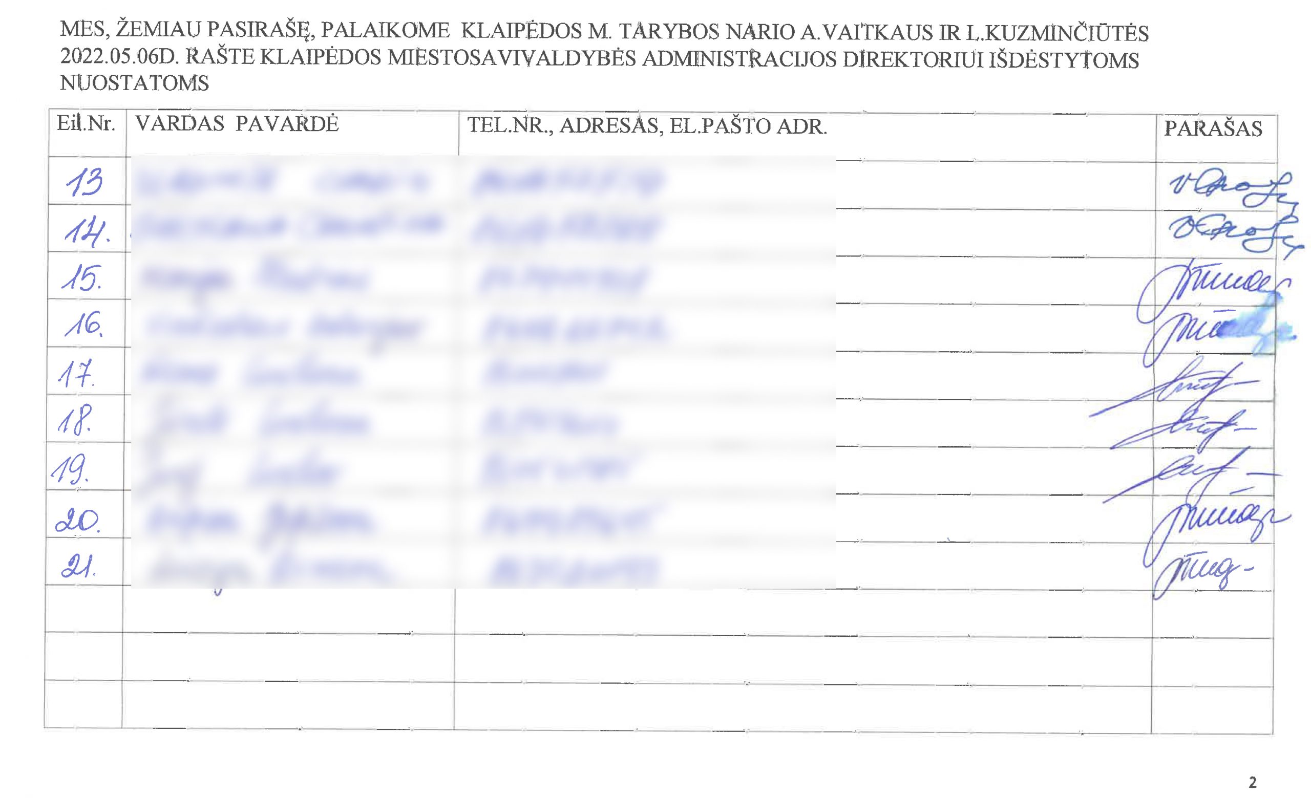 Dalis pasirašiusiųjų nenurodė savo adresų – tik savo el. paštų adresus ir/arba telefono numerius.