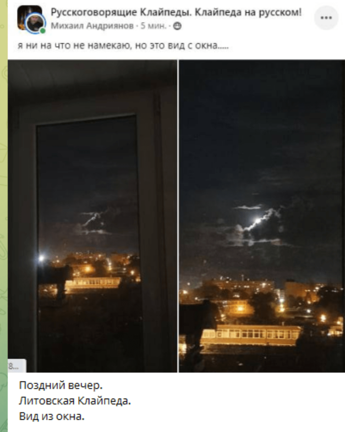 Tūlas Michail Andrijanov uždaroje rusakalbių socialinio tinklo grupėje pasidalino vaizdu, pamatytu pro langą, triumfuodamas, jog net esą dangus paišo rusofašistinius Z ženklus.