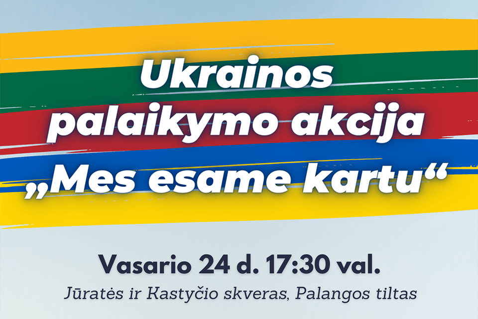 Vasario 24 d., penktadienį, 17.30 val., palangiškių ir ukrainiečių bendruomenės kviečiamos susitikti Jūratės ir Kastyčio skvere prie Palangos tilto bei dalyvauti Ukrainos palaikymo akcijoje „Mes esame kartu“. Vieningai parodykime, jog esame kartu su Ukrainos piliečiais, kurie jau metus kovoja už savo ir visų mūsų laisvę.