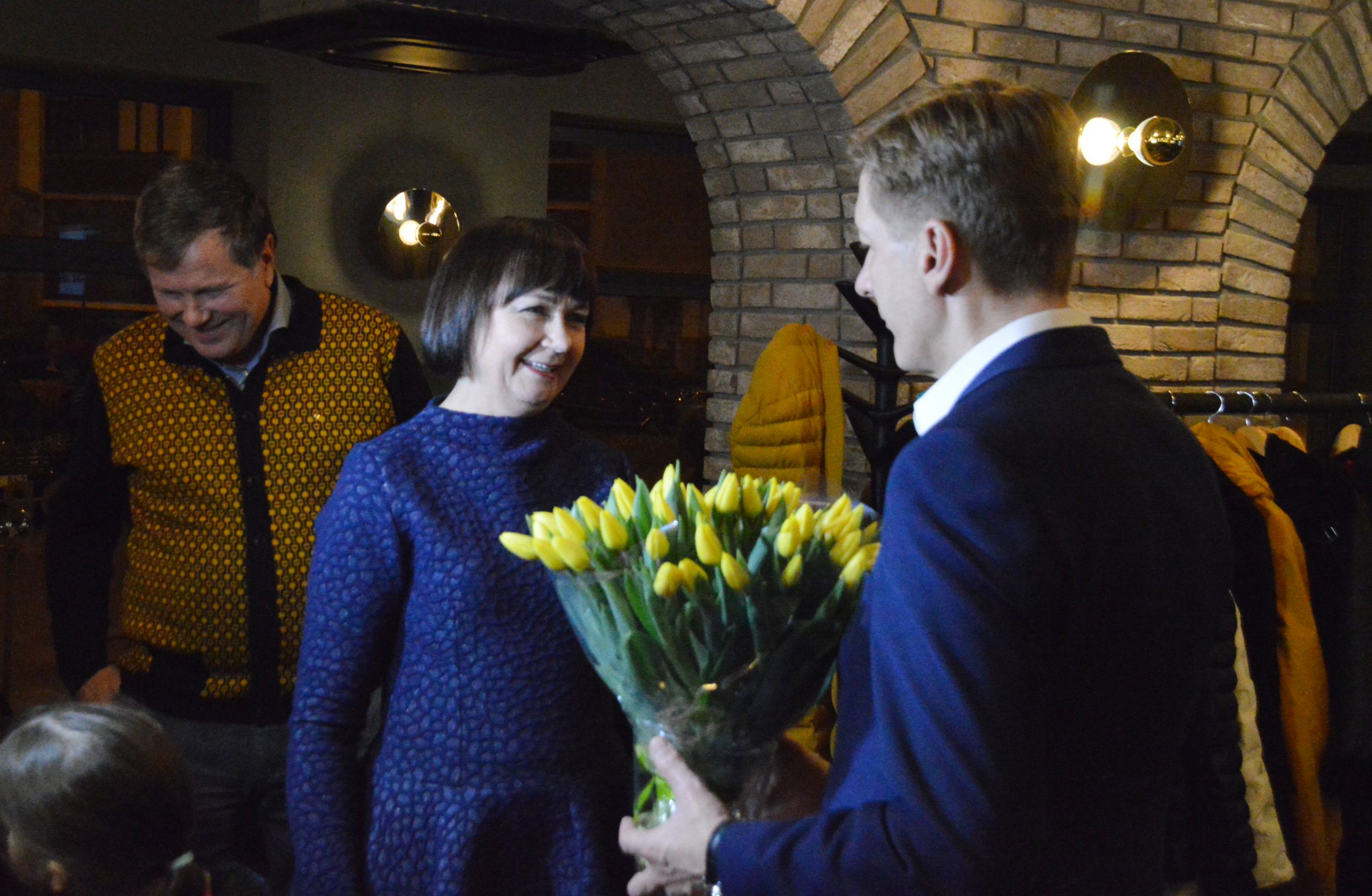 Tarp sveikinusiųjų A. Vaitkų buvo ir iš politikos pasitraukiančios dabartinės miesto Tarybos narės Nina Puteikienė bei Alina Velykienė.