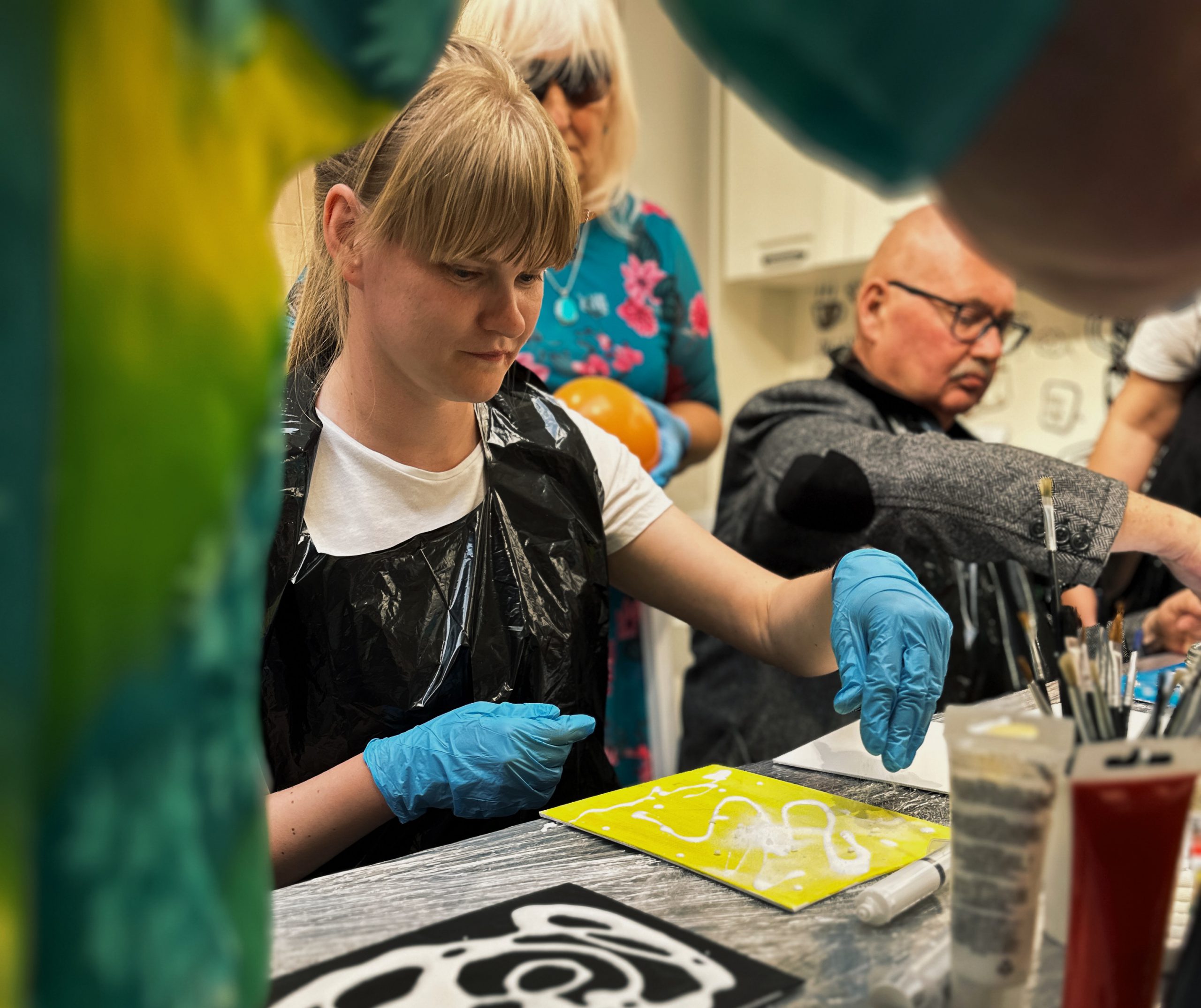 Lankytojai turėjo galimybę sudalyvauti ir meninėse dirbtuvėse, kuriose kartu su menininkais kūrė paveikslus.