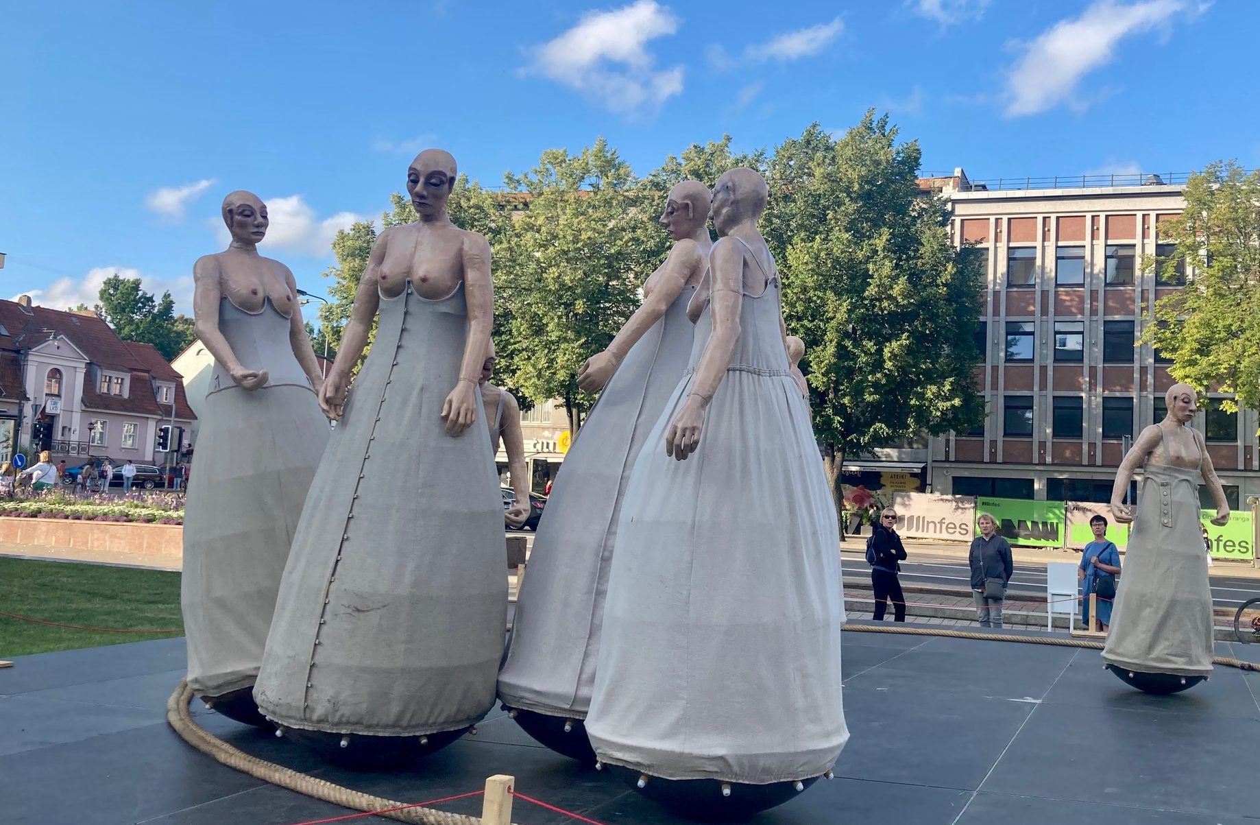 Jis pripažino, kad dėl daug diskusijų sukėlusių „Baltų moterų” iš pradžių buvo abejonių ir kolegėms, bet galiausiai buvo sutarta, jog įsitenkant į finansavimą reikia atsivežti į šią instaliaciją, kurią sukūrė viena iš „Šermukšnyje” vaidinusio Nyderalandų teatro aktorių. Pirma idėja, anot A. Peštenio, buvo jas pastatyti ant vandens Jono kalnelio užutekyje, bet galiausiai buvo pasirinkta Atgimimo aikštė, neseniai netekusi gėlių laivelio.