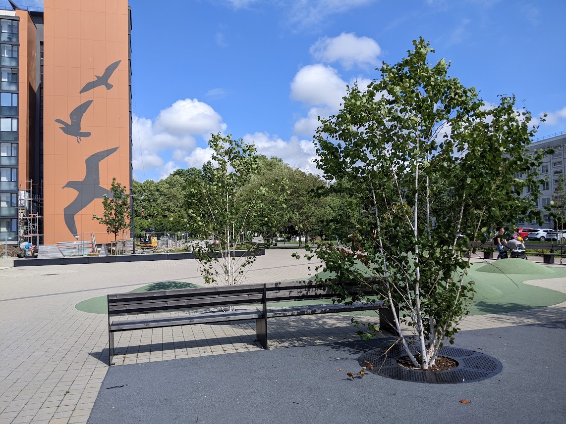 Prie buvusio „Vaidilos“ kino teatro gyventojams sukurtos poilsio erdvės, arčiau Taikos prospekto įrengta scena, mažųjų klaipėdiečių laisvalaikiui – žaidimų aikštelė ir guminiai laipiojimo kalneliai, sukurtos žaliosios zonos, suformuoti želdynai, atnaujinti pėsčiųjų takai, nutiesti inžineriniai tinklai.
