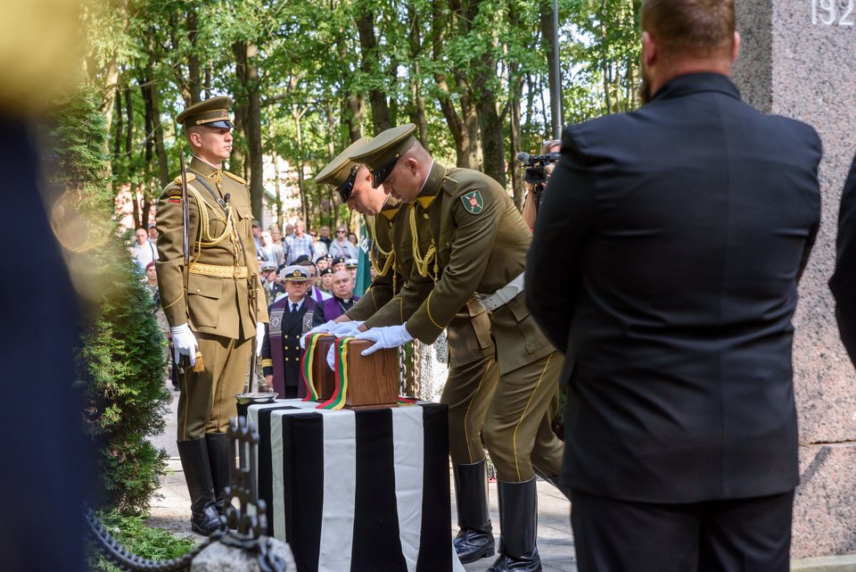 Savo ruožu lietuvių išeivijos JAV šaulių atstovas dėkojo šalies ir Klaipėdos vadovams už surengtą iškilmingą perlaidojimo ceremoniją.