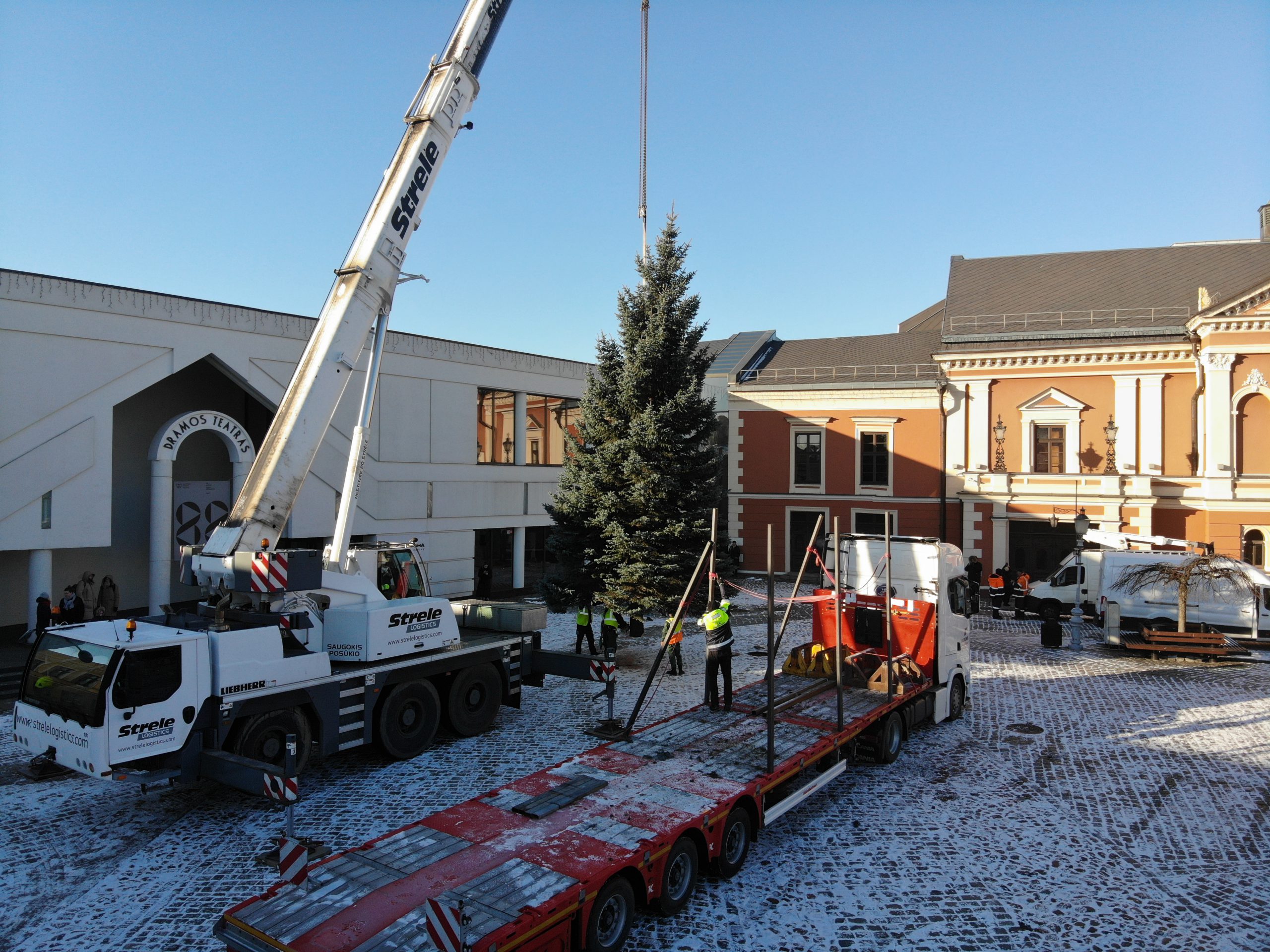 Tiesa, šiemet pasikeitus rangovams pačios eglutės transportavimas į Teatro aikštę užtruko kaip niekada ilgai – nuo 10 iki 13 val.
