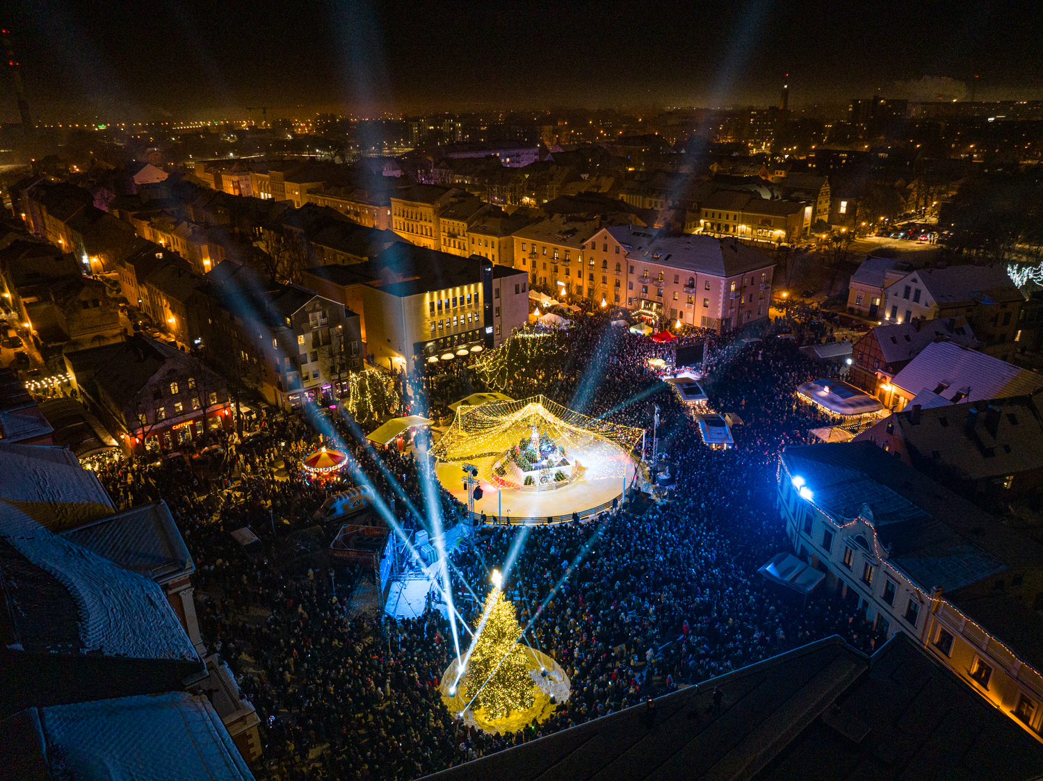 Šeštadienio vakarą pilnutėlėje Teatro aikštėje buvo įžiebta Klaipėdos kalėdinė eglutė ir šių švenčių akcentu tapusi ledo čiuožykla.
