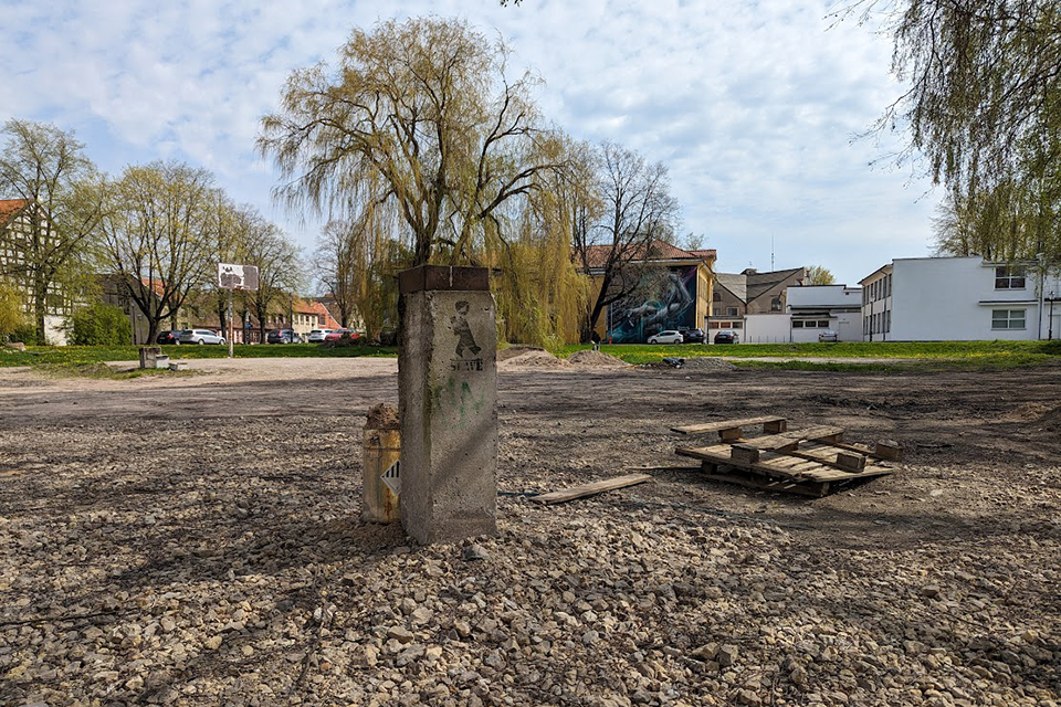 Vaizdelį papildo ir statybininkai, kurie tvarkė senamiesčio gatves ir buvusios IV vidurinės mokyklos stadione sandėliavo statybines medžiagas bei laužą. Tą turtą jie išsivežė, bet ateitiems kartoms paliko paminklą.