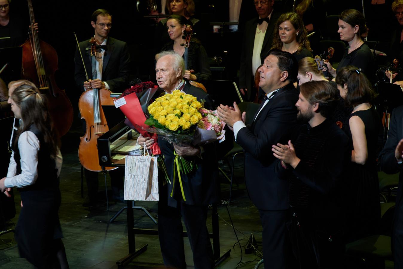 Ant dirigento pakylos sugrįžęs maestro savo jubiliejinį koncertą užbaigė diriguodamas kibirkščiuojantį „Radeckio maršą“.