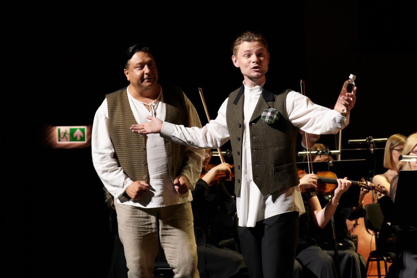 Pirmoje koncerto „Vivat, Maestro!“ dalyje skambėjo ištraukos iš 1975 m. parašyto miuziklo „Pagramančio šnekučiai“, atliekamos S. Domarko diriguojamo KVMT simfoninio orkestro, choro ir šiandien teatre dainuojančių solistų.