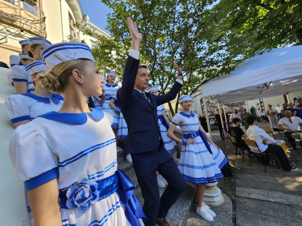 Tuo metu nuo abiturientų žodį tarę Jūrų kadetų mokyklos auklėtiniai savo kalbą, kurioje dominavo jūriniai akcentai, pabaigė palinkėjimu „Vėjo, vėjo, vėjo“.