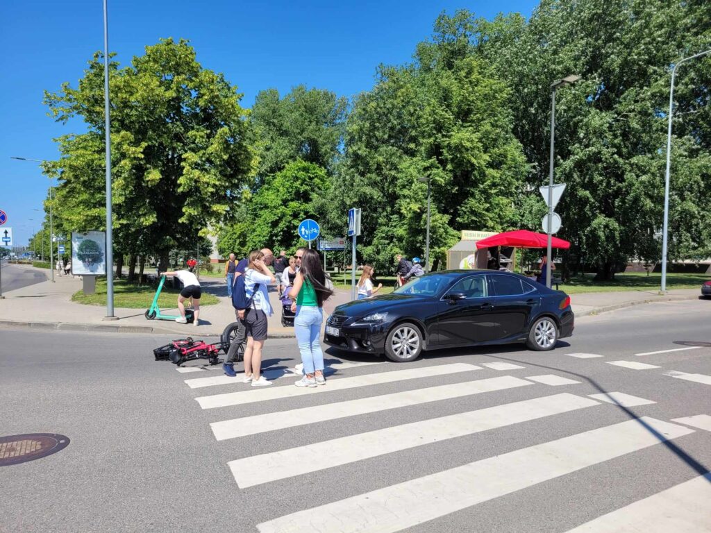 Ketvirtadienį popiet ties „Akropoliu”, Kauno g. ir Taikos pr. sankryžoje, pėsčiųjų perėjoje, automobilis partrenkė dviračiu važiavusią merginą. Laimei, „Lexus” automobilis važiavo nedideliu greičiu ir dviratininkė, panašu, atsipirko išgąsčiu bei nedideliu kojos nubrozdinimu.