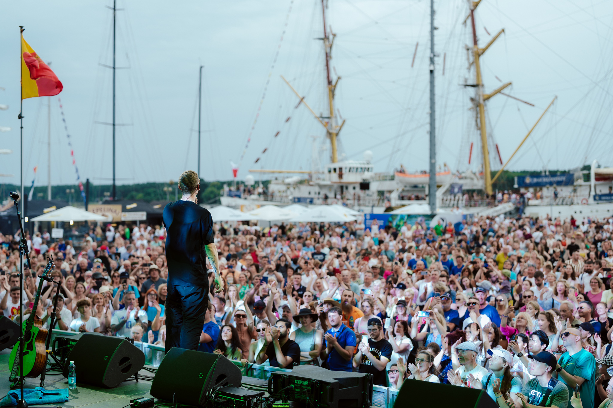„The Tall Ships Races“ žvaigždės iš Škotijos – Nathano Evanso koncertas atidarė karšto penktadienio muzikinius pasirodymus Kruizinių laivų terminale. Pasaulinę šlovę pelniusio hito „Wellerman“ atlikėją miestui dovanojo Klaipėdos valstybinio jūrų uosto direkcija ir jos vadovas Algis Latakas.