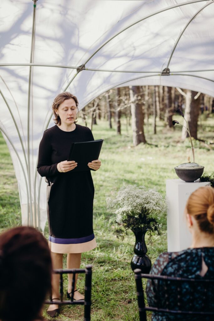 Aš esu baigusi režisūrą. Mano meninis kelias nutrūko ir vėliau pradėjau verslauti. Kai pamačiau skelbimą, kad ieškomi ceremonmeisteriai, galvojau, kaip pasiilgau kūrybinio darbo su žmonėmis. Pradžioje vedžiau vestuvių ceremonijas, bet supratau, kad tai visiškai ne man. Būtent laidotuvių ceremonijose pamačiau didelę prasmę.