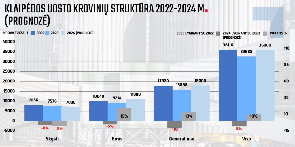 Uoste matomas ir žymus ro-ro krovinių augimas. Visi generaliniai kroviniai, pasak V. Šileikos, turėtų viršyti 2022 metų krovos apimtis.