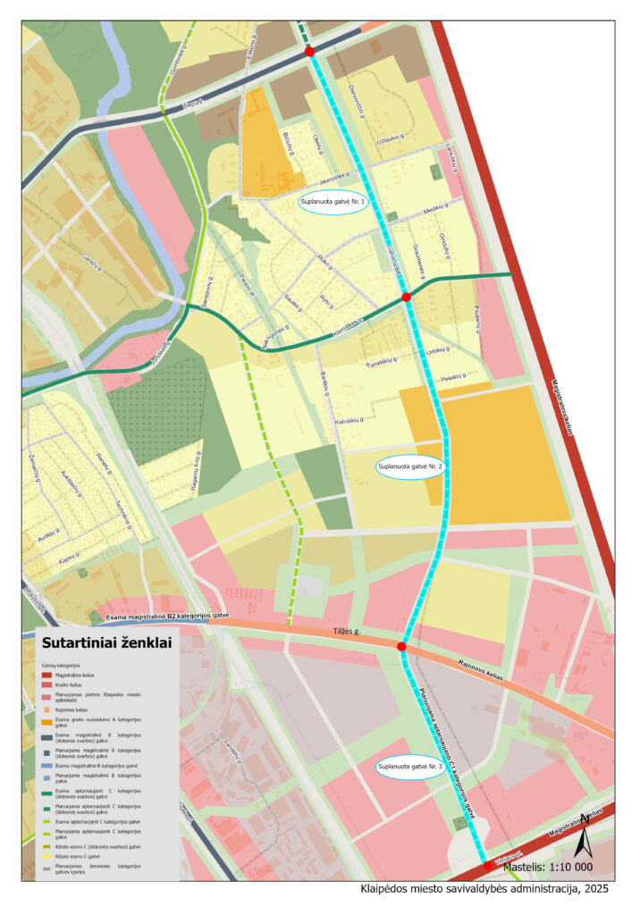 Išmanaus skaitmeninio miesto skyriaus vedėja Marija Buivydienė darbo grupei pristatė, kad nuo Liepų gatvės iki Vilniaus plento turės atsirasti C1 kategorijos „gana didelis magistralinis kelias“. Jis kirstų Klemiškės, Tilžės gatves, bet teisės aktai nenumato reikalavimo, kad tarp sankryžų būtinai turi būti atskiros gatvės.