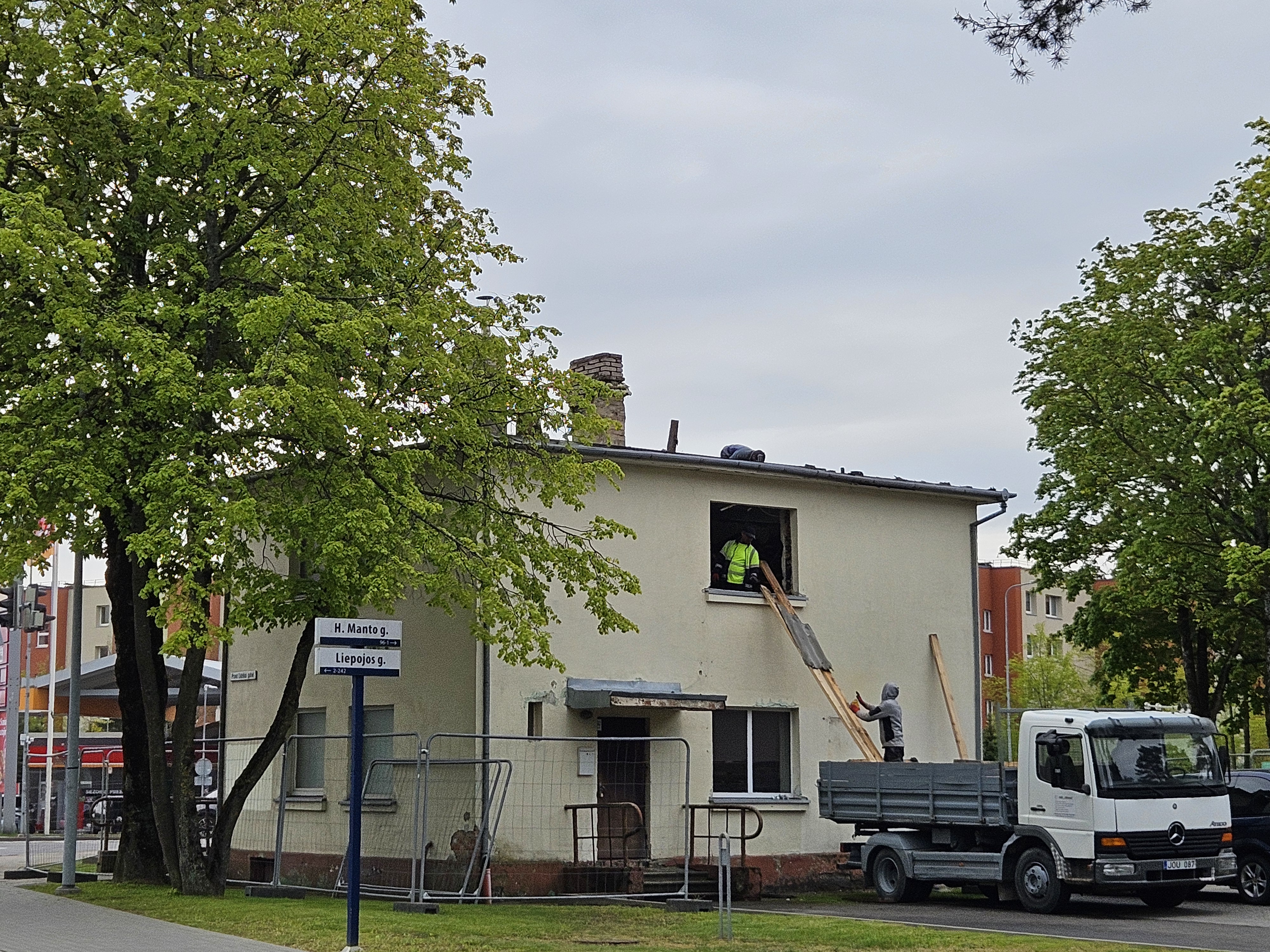 18 073,77 Eur vertės sutartį su Klaipėdos savivaldybė dėl namo Herkaus Manto g. 83 griovimo balandžio viduryje pasirašiusi UAB „Astekas“ negaišta laiko – jos vyrai darbuojasi ir sekmadienį.