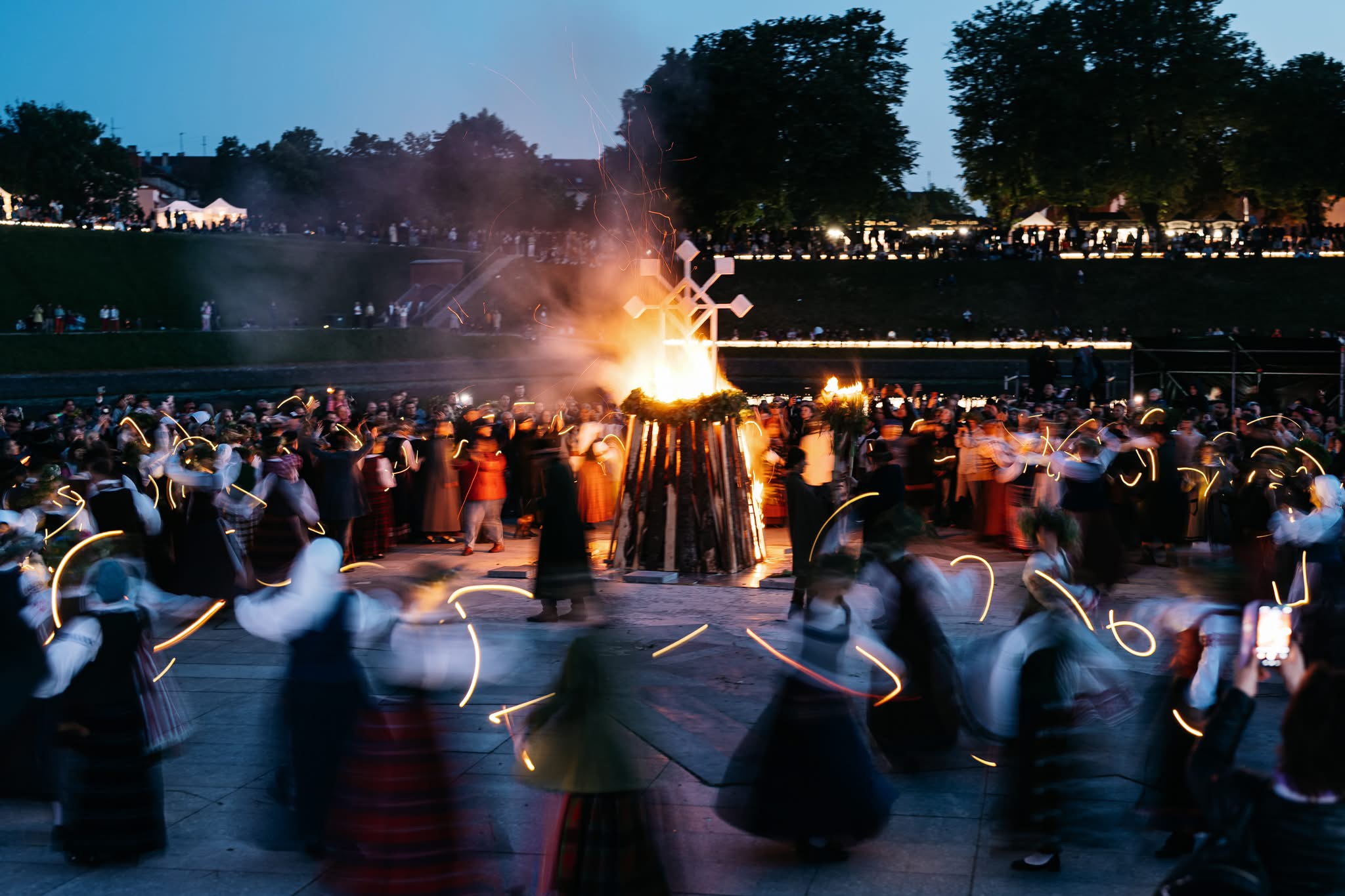 Šeštadienio vakarą Klaipėdos gyventojai ir miesto svečiai Jono kalnelyje su dainomis, šokiais ir ugnies burtų šviesa, pasitiko vasaros saulėgrįžą.