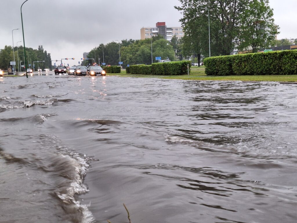 „Pirmadienį, kaip ir didžiąją dalį Lietuvos, Klaipėdą pasiekė intensyvi liūtis, kai per labai trumpą laiką iškrito didelis kritulių kiekis“, – kodėl po viaduko vėl buvo susidariusi „jūra“, paaiškino „Klaipėdos vanduo“.