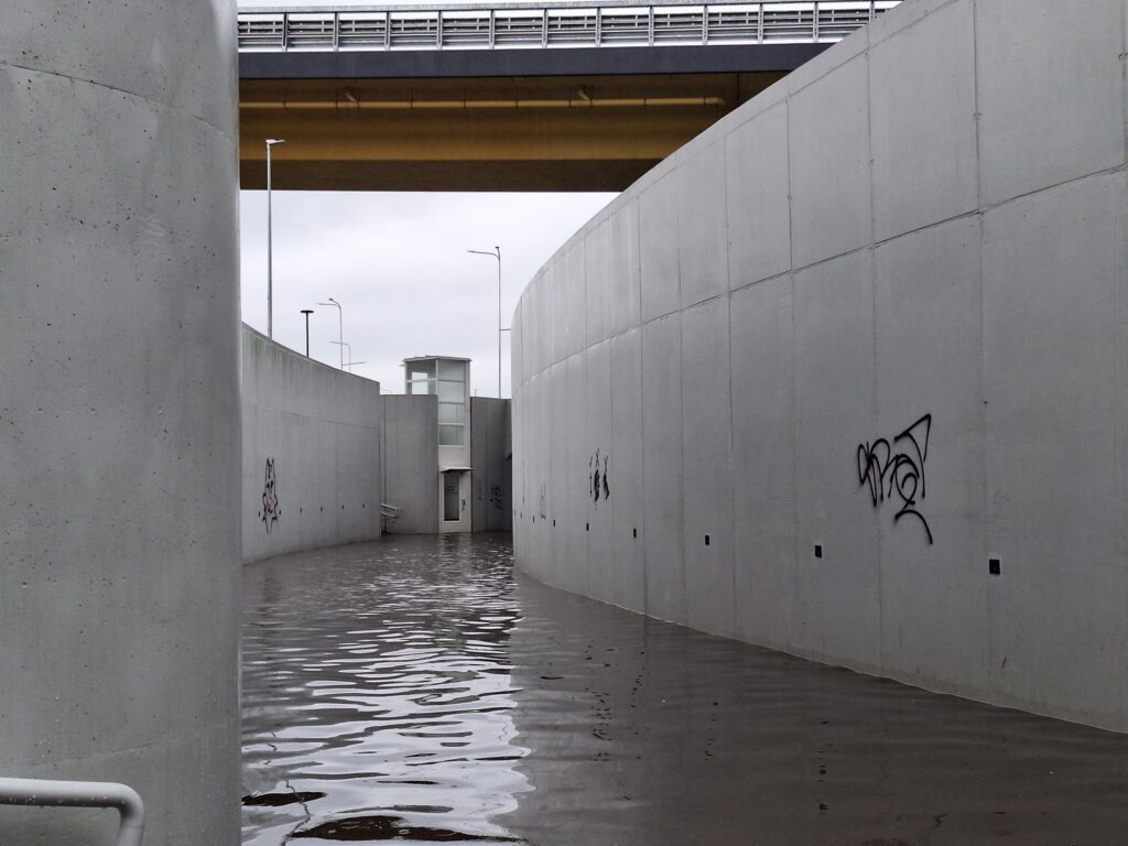 Klaipėdiečiai stebisi ir tuo, kad tvinsta naujoji požeminė perėja, įrengta rekonstruotoje Baltijos prospekto, Šilutės ir Vilniaus plentų sankryžoje.