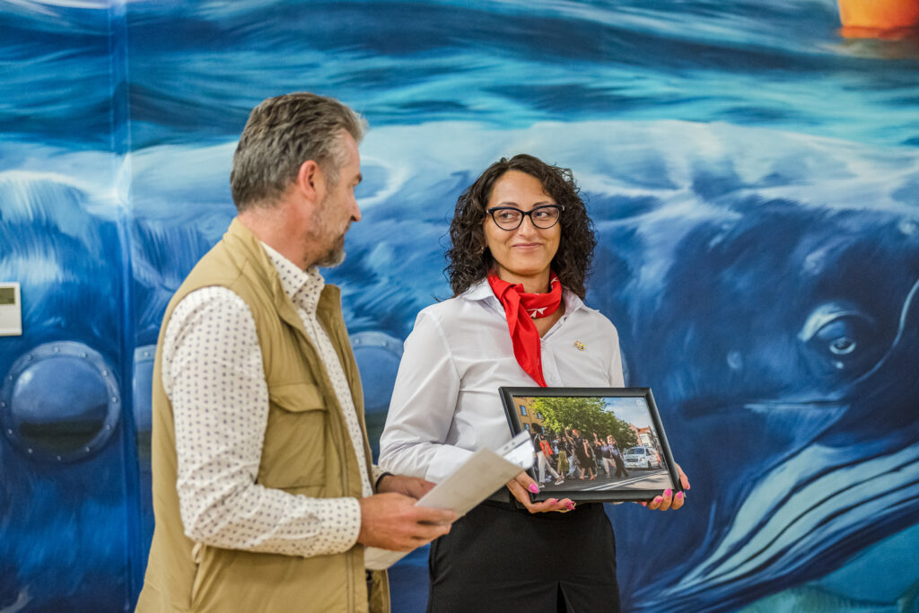 Iš pradžių eisenos organizatoriai atminimo nuotraukas ir padėkas įteikė jūrinės eisenos dalies atstovams – Jūrų kapitonų asociacijai bei Jūros veteranams, Lietuvos jūrininkų sąjungai, kurių dėka Jūros šventės eisena ir yra unikali.