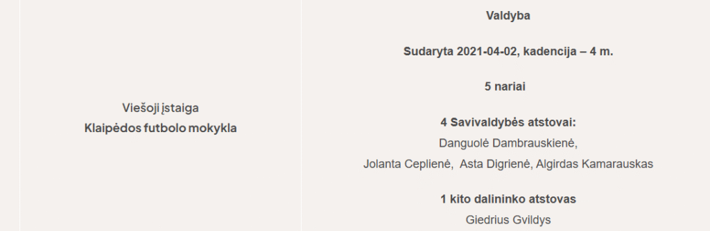 Futbolo mokyklos valdyba ketverių metų kadencijai buvo sudaryta 2021 metais.