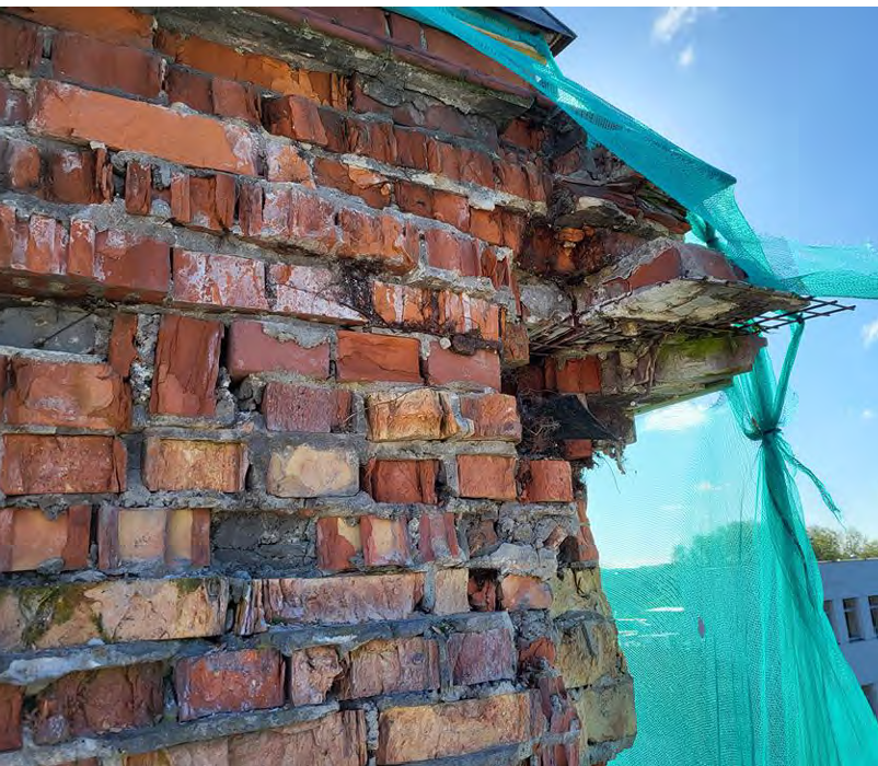 Ekspertai nurodė, jog iki tvarkybos darbų pastato „frontonų elementai kartu su konsolėmis turi būti apjungiami plieninėmis (vertikaliomis ir horizontaliomis) juostomis, taip suvaržant galimą konsolių ar jų dalių nulaužimą“. Frontonai iki tvarkybos darbų taip pat turi būti apjuosti apsauginiais tinkleliais, sulaikančiais krintančias pažeistas plytas ar jų dalis.